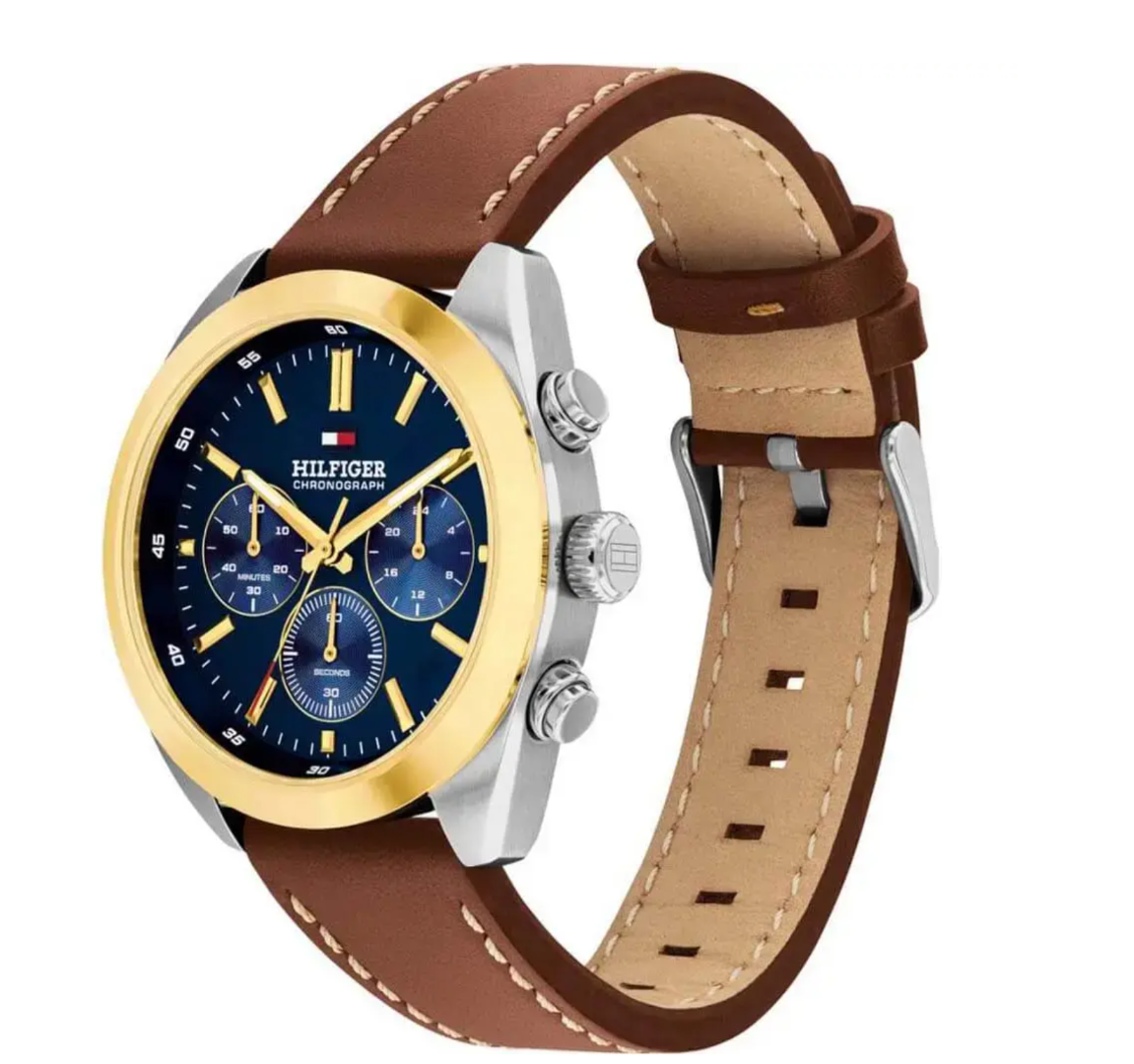 Ανδρικό Ρολόι Tommy Hilfiger Hudson Chronograph 1710720, Quartz, 40mm, Μπλε Καντράν, Καφέ Δερμάτινο Λουράκι, Χρονογράφος & 24ωρη Ένδειξη, 5 ATM