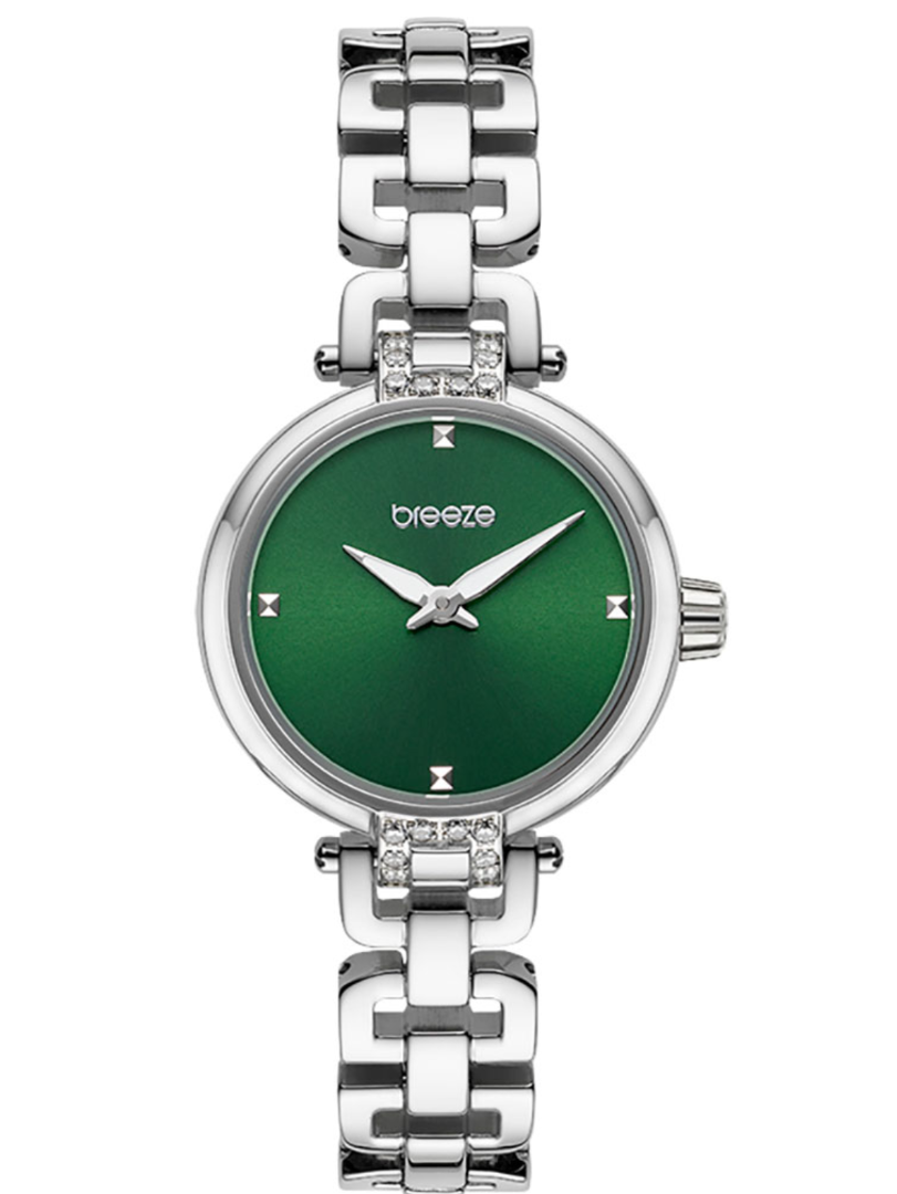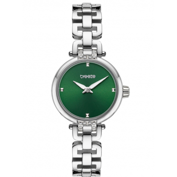 Breeze Knotique Crystals 613021.7 Γυναικείο Ρολόι 28mm Μπαταρίας με Ασημί Ανοξείδωτο Μπρασελέ και Πράσινο Καντράν