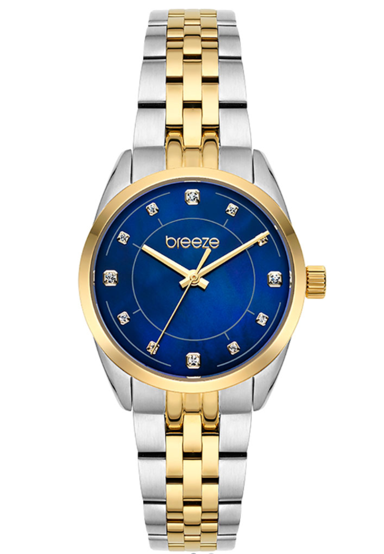 Breeze Ocealis Crystals 712611.3 Γυναικείο Ρολόι Μπαταρίας 30mm με Δίχρωμο Ανοξείδωτο Μπρασελέ και Μπλε Καντράν
