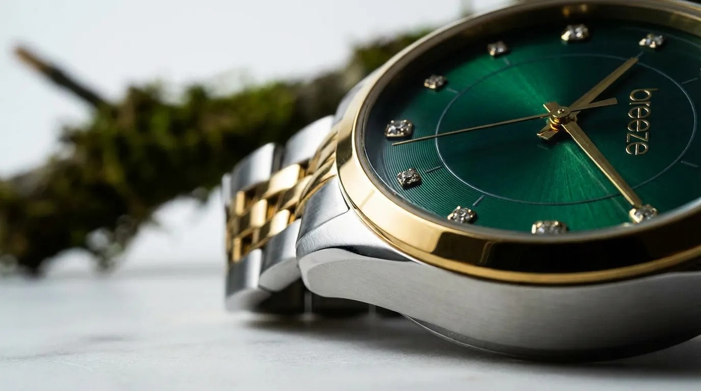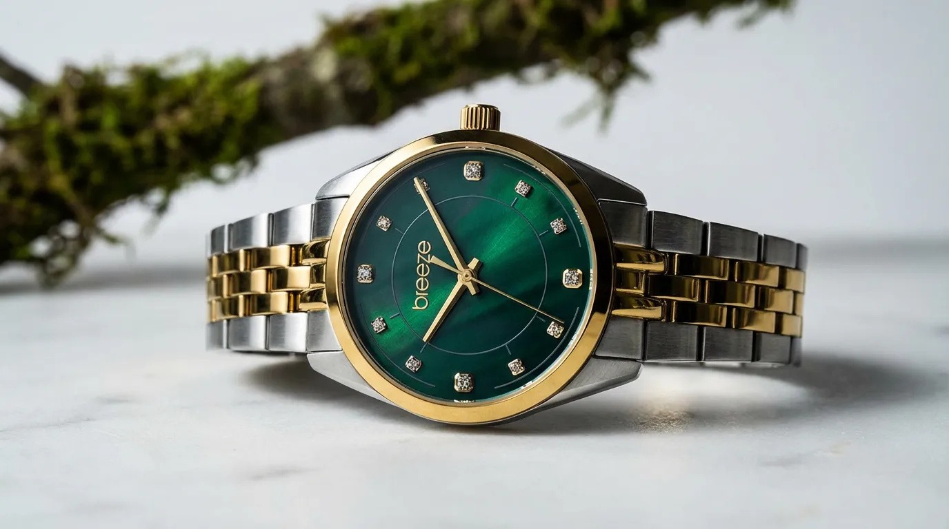 Breeze Ocealis Crystals 712611.7 Γυναικείο Ρολόι 30mm Μπαταρίας με Μεταλλικό Μπρασελέ Δίχρωμο, Πράσινο Καντράν, 10 ATM