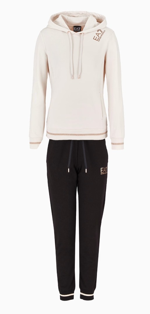 stretch ankle cuffs with light-gold insert, EA7 logo on the left leg