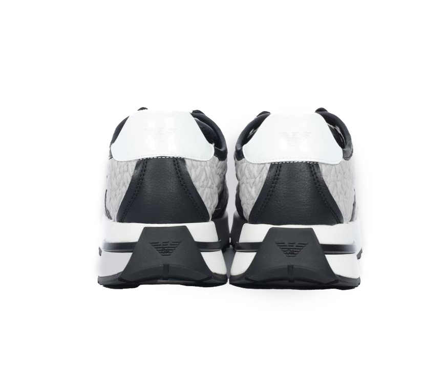 Emporio Armani γυναικεία sneakers σε γκρι απόχρωση, με σύγχρονο design που συνδυάζει κομψότητα και καθημερινή άνεση. Το χαμηλό τους προφίλ τα κάνει ευέλικτα για κάθε περίσταση, ενώ το δέσιμο με κορδόνια προσφέρει σταθερή και σωστή εφαρμογή στο πόδι.