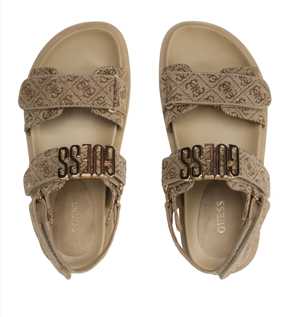 Guess Γυναικεία Σανδάλια Fabelis2 FL6FB2FAL03-BEIBR Καφέ, Με 4G Logo, Velcro, Flat