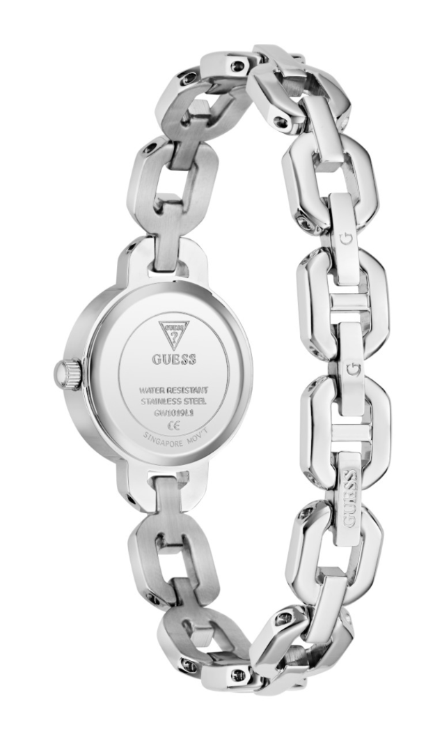 Το GUESS Siren GW1019L1 είναι ένα κομψό γυναικείο ρολόι που συνδυάζει μοντέρνα αισθητική και διαχρονική κομψότητα. Διαθέτει μηχανισμό Quartz ακριβείας και κάσα 23mm, ιδανική για λεπτό και κομψό καρπό. Το γαλάζιο καντράν με ασημένιους δείκτες και διακοσμητικές πέτρες προσφέρει λαμπερή και θηλυκή εμφάνιση. Η κάσα και το μπρασελέ από ανακυκλωμένο ανοξείδωτο ατσάλι προσφέρουν ανθεκτικότητα και άνεση στη χρήση, ενώ το κούμπωμα G-Link εξασφαλίζει ασφαλή εφαρμογή. Συνοδεύεται από αυθεντική συσκευασία GUESS και επίσημη εγγύηση δύο ετών.