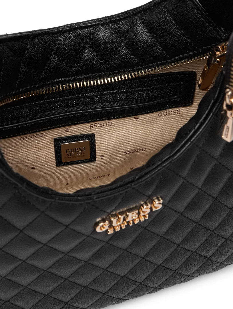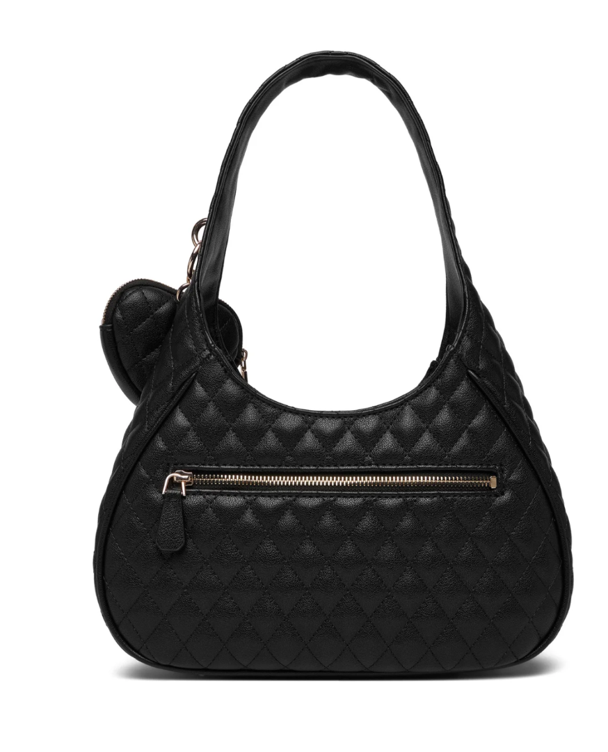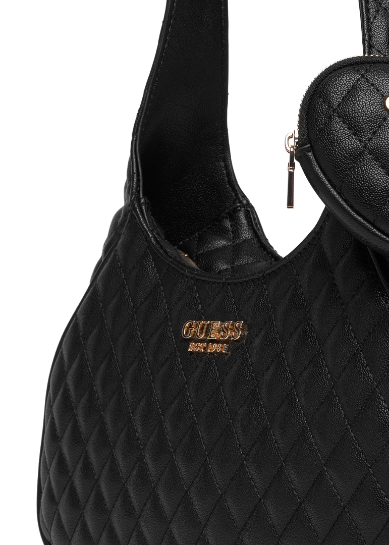 Guess Atabey HWQG9894010-BLA Γυναικεία Τσάντα Ώμου, Μαύρη, Καπιτονέ Σχέδιο, Οικολογικό Δέρμα