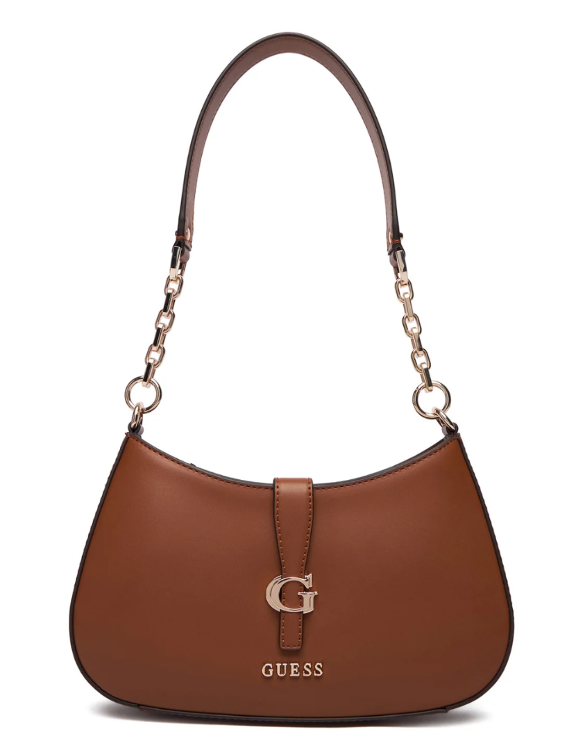Guess Carrie HWVG9896180-COG Γυναικεία Τσάντα Ώμου Καφέ, Οικολογικό Δέρμα