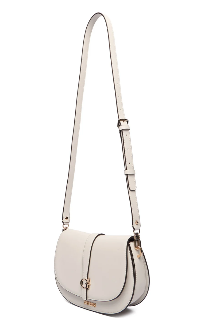 Διαθέτει αφαιρούμενη χειρολαβή καθώς και ρυθμιζόμενο λουράκι ώμου, επιτρέποντας να φορεθεί είτε στον ώμο είτε χιαστί. Η εκρού απόχρωση και ο διαχρονικός σχεδιασμός Guess δημιουργούν ένα fashion αξεσουάρ που ταιριάζει εύκολα σε κάθε στυλ.