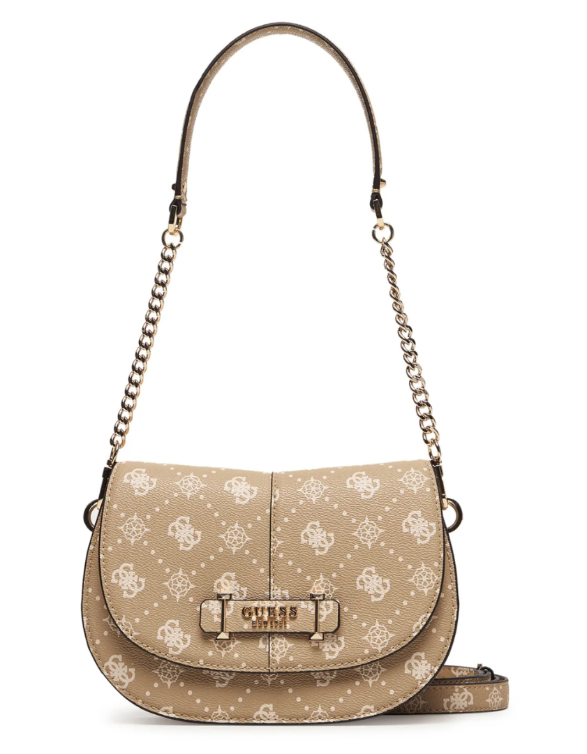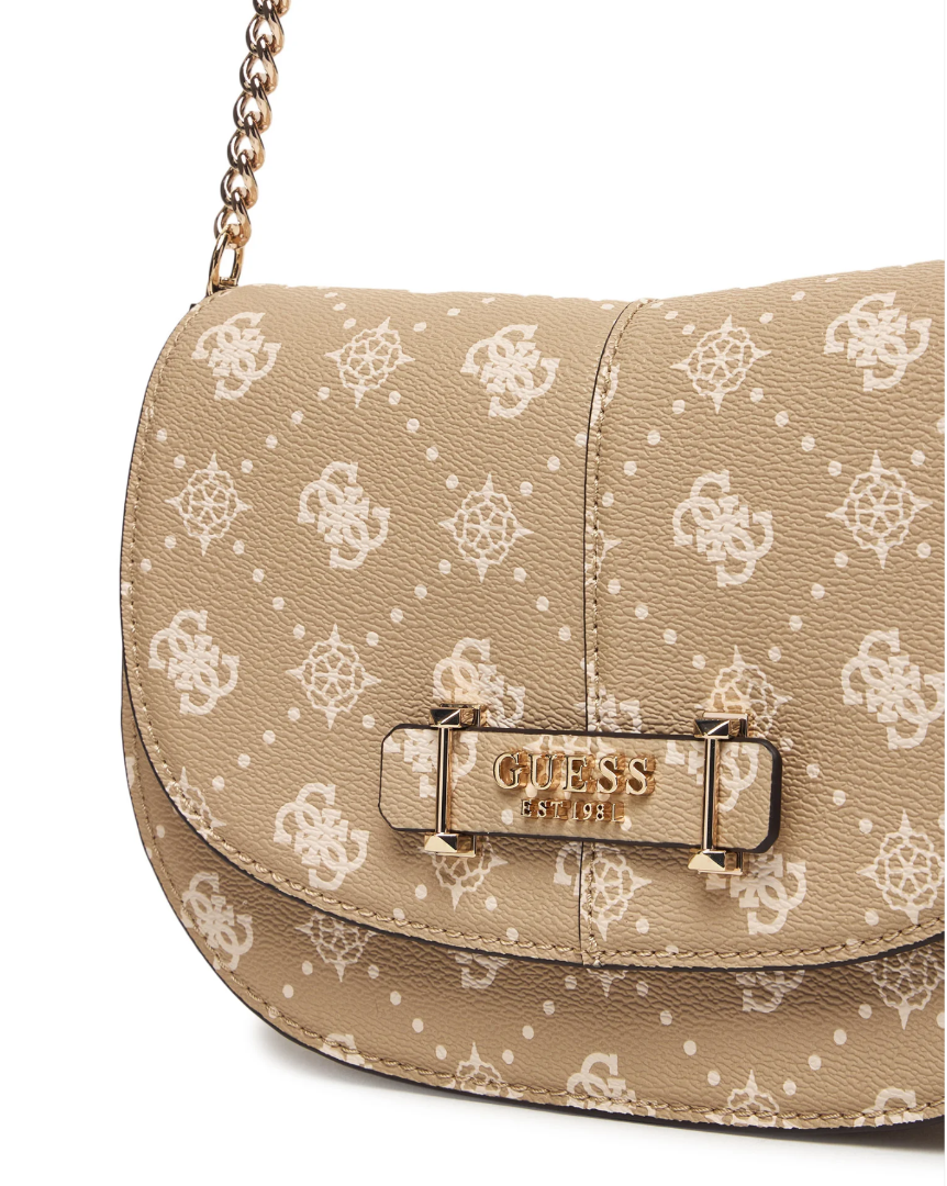 Guess Carrie Logo HWGP9898200-BSG Γυναικεία Τσάντα Χιαστί / Χειρός, Μπεζ, Οικολογικό Δέρμα
