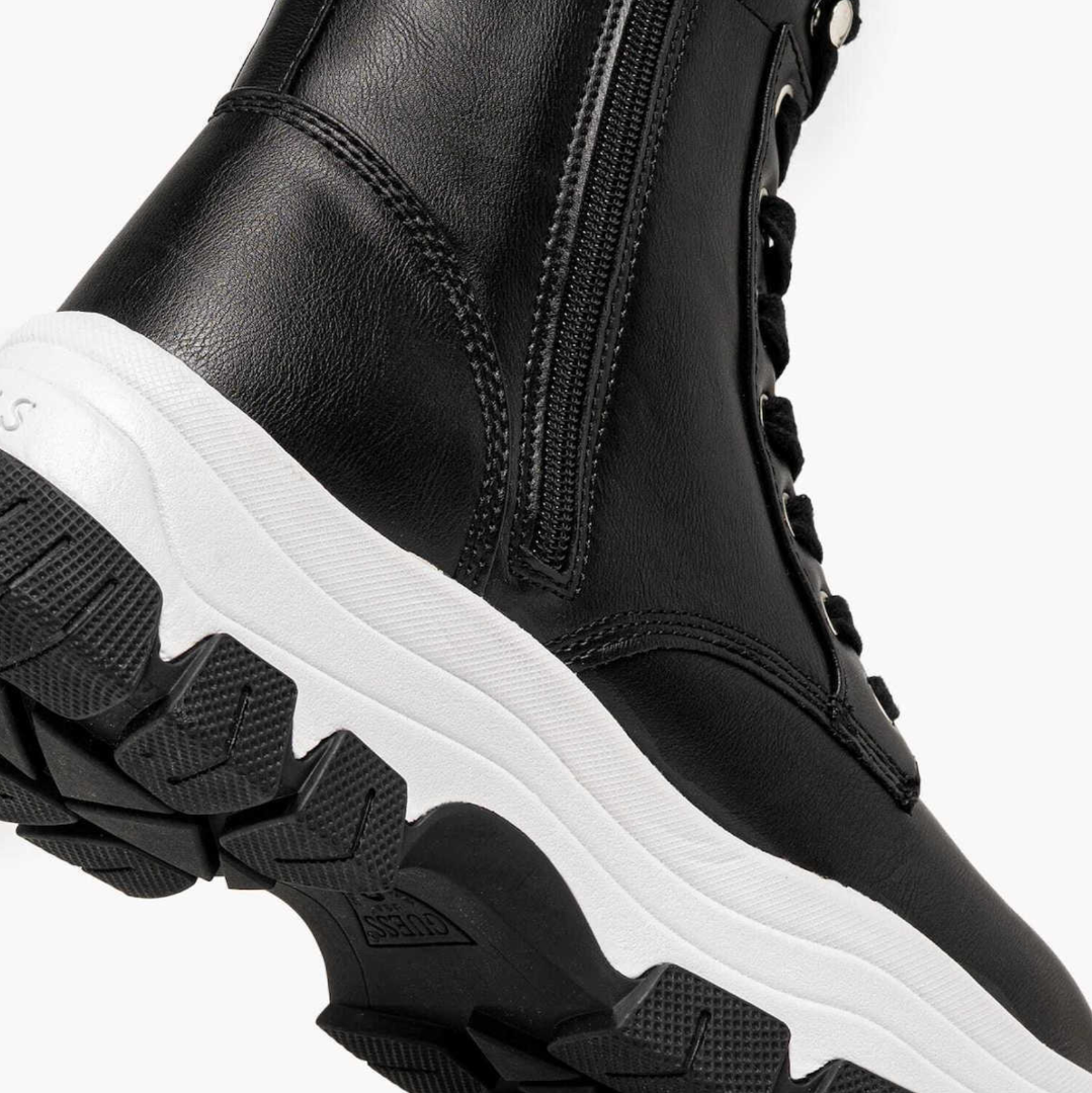 Με ύψος σόλας 6 cm, προσθέτουν κομψότητα και δυναμικό χαρακτήρα σε κάθε outfit. Το μαύρο χρώμα τα κάνει ευκολοσυνδύαστα με jeans, φορέματα ή tailored σύνολα, αποτελώντας ιδανική επιλογή για stylish χειμερινές εμφανίσεις με την υπογραφή της Guess.