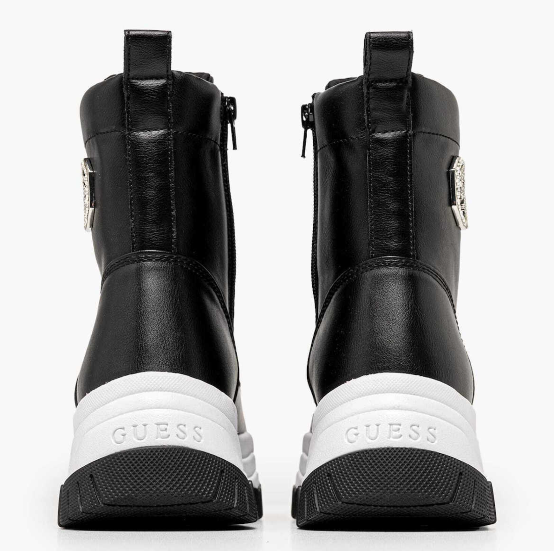 Τα γυναικεία μποτάκια Guess Benzon FLFBNZELE12 BLACK συνδυάζουν μοντέρνο σχεδιασμό με πρακτικότητα για τις καθημερινές και βραδινές εμφανίσεις του χειμώνα. Είναι κατασκευασμένα από eco-leather εξωτερικά, ενώ το εσωτερικό τους αποτελείται από eco-leather και ύφασμα, προσφέροντας άνεση και σωστή εφαρμογή. Διαθέτουν εσωτερικό φερμουάρ για εύκολη και γρήγορη εφαρμογή, καθώς και αντιολισθητική σόλα για μεγαλύτερη σταθερότητα στο περπάτημα.