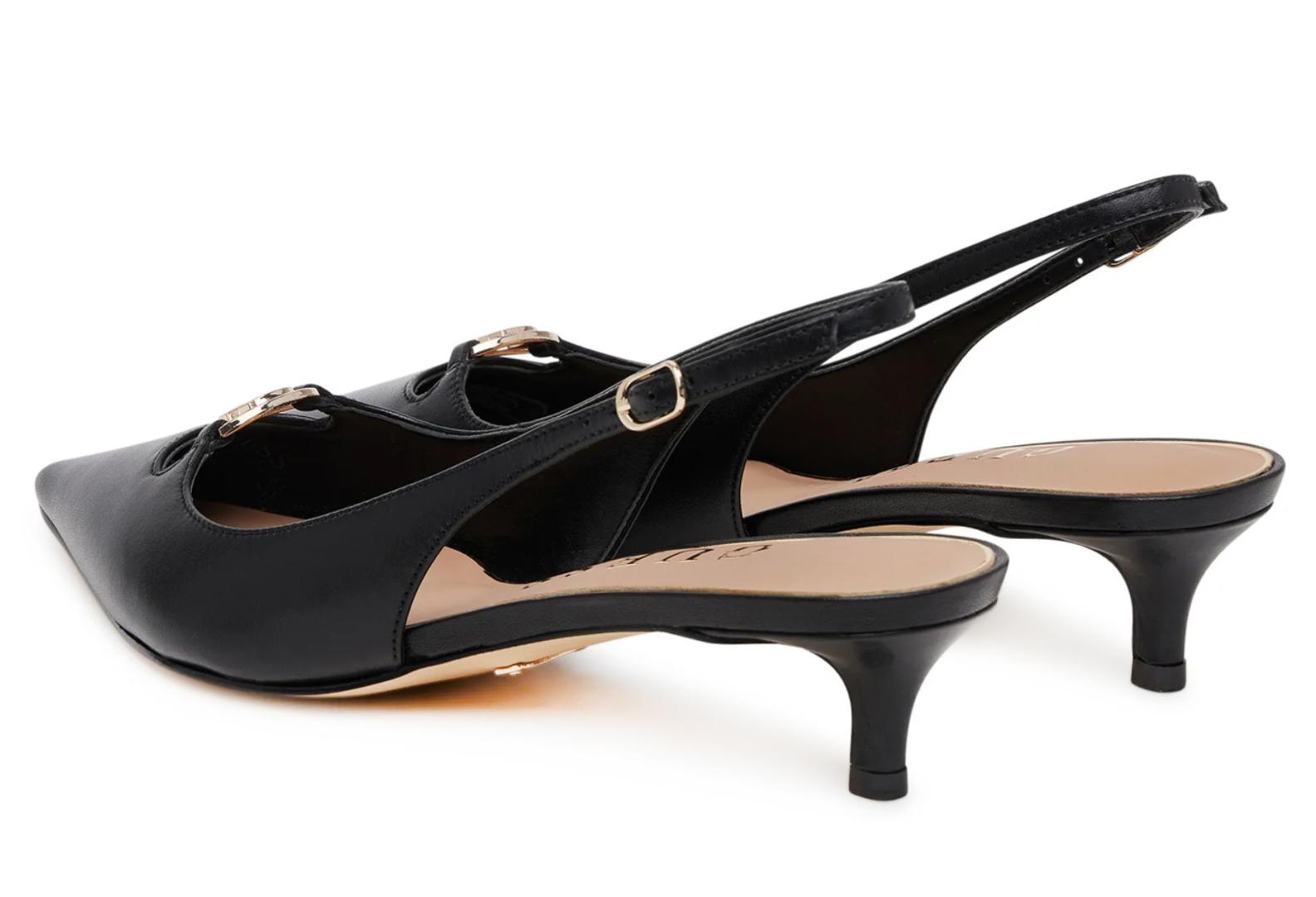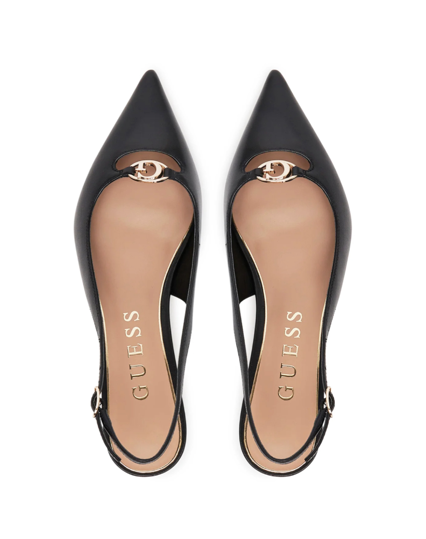 Guess Jessah Black Γυναικείες Δερμάτινες Γόβες Slingback Μαύρες (FLTJESLEA05-BLACK).