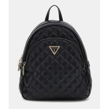 Guess Giully HWQG8748320-BLA Γυναικείο Σακίδιο Πλάτης Καπιτονέ, Μαύρο, Οικολογικό Δέρμα, Με Μεταλλικό Λογότυπο