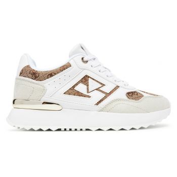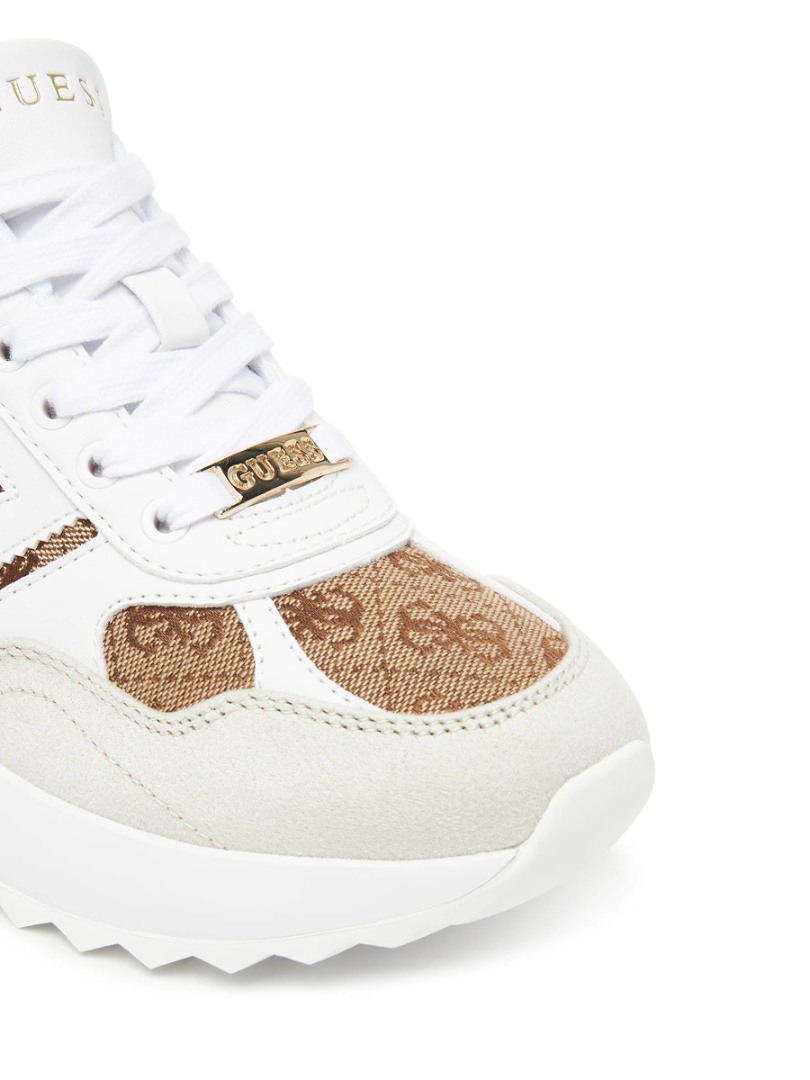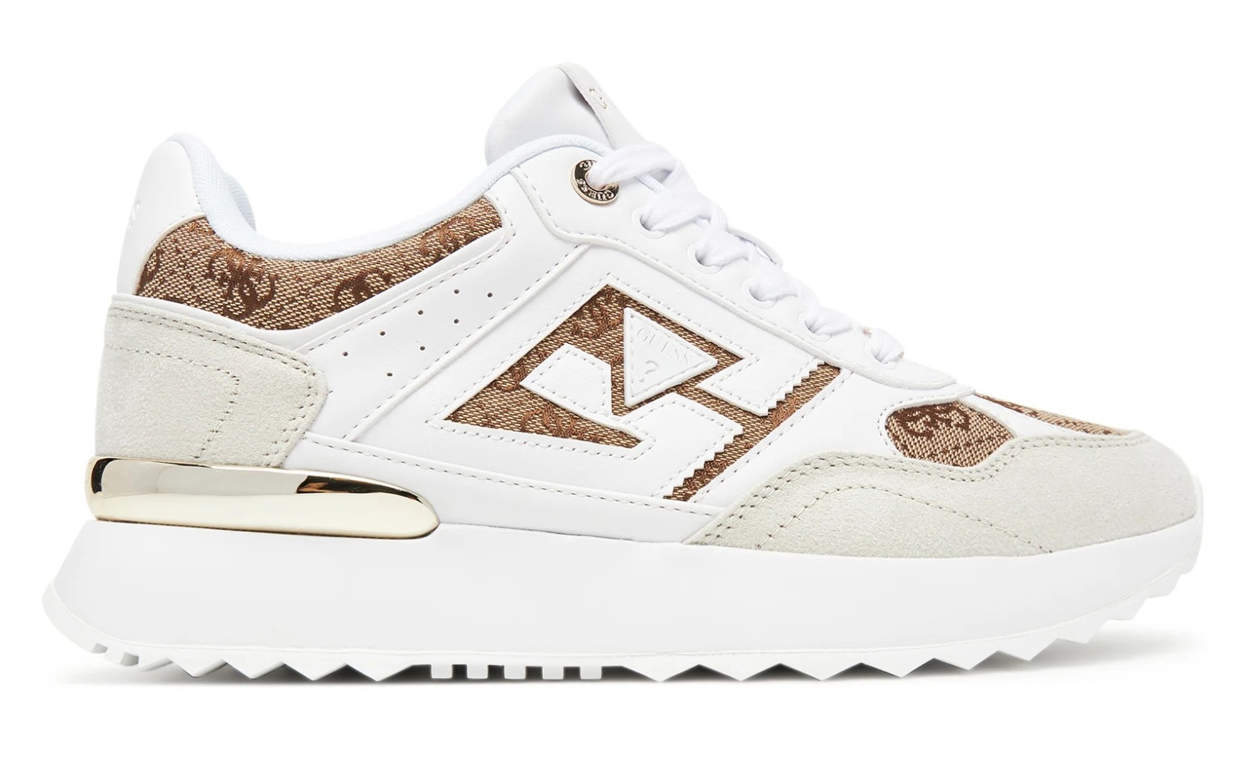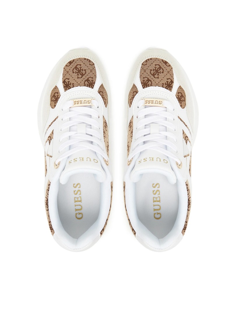 Γυναικεία sneakers Guess FLTKORFAL12 BEIBR σε συνδυασμό καφέ λευκού και μπεζ σχεδιασμένα για καθημερινές casual και urban εμφανίσεις με έντονο fashion χαρακτήρα