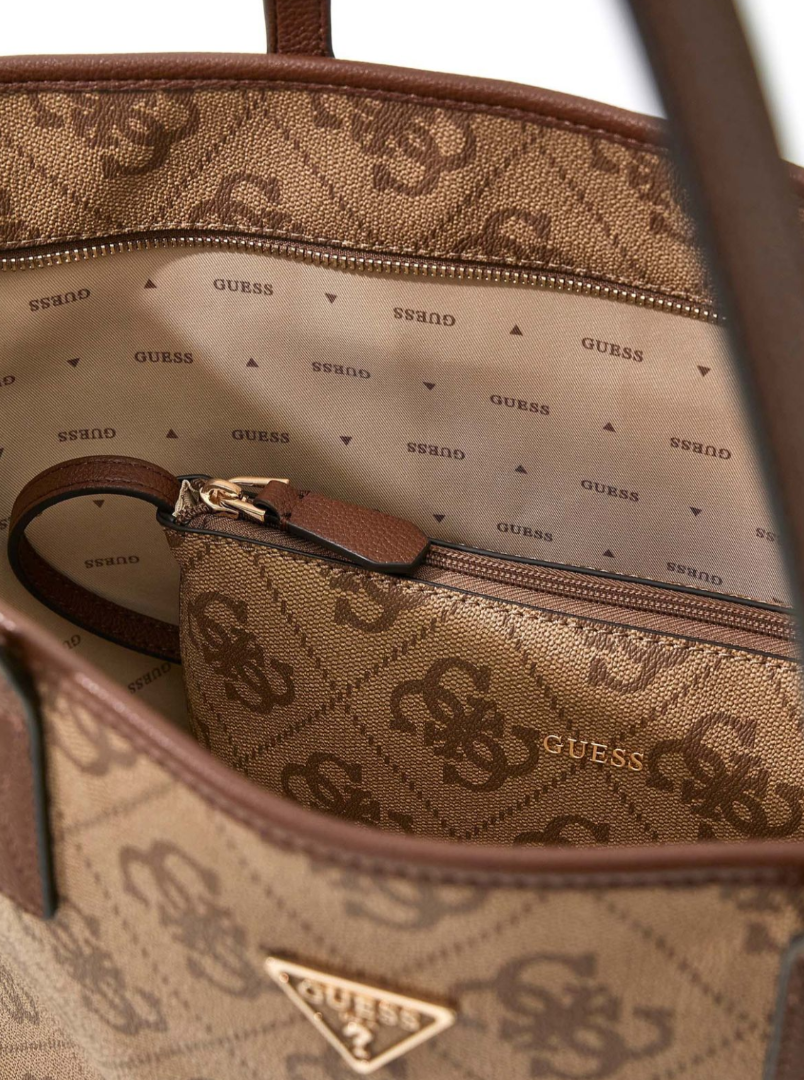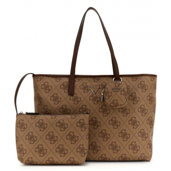 Guess Γυναικεία Τσάντα Ώμου Shopper Power Play II Large Tech Tote HWOS7124240-LGW Καφέ Logo, Οικολογικό Δέρμα, Με Θήκη Laptop