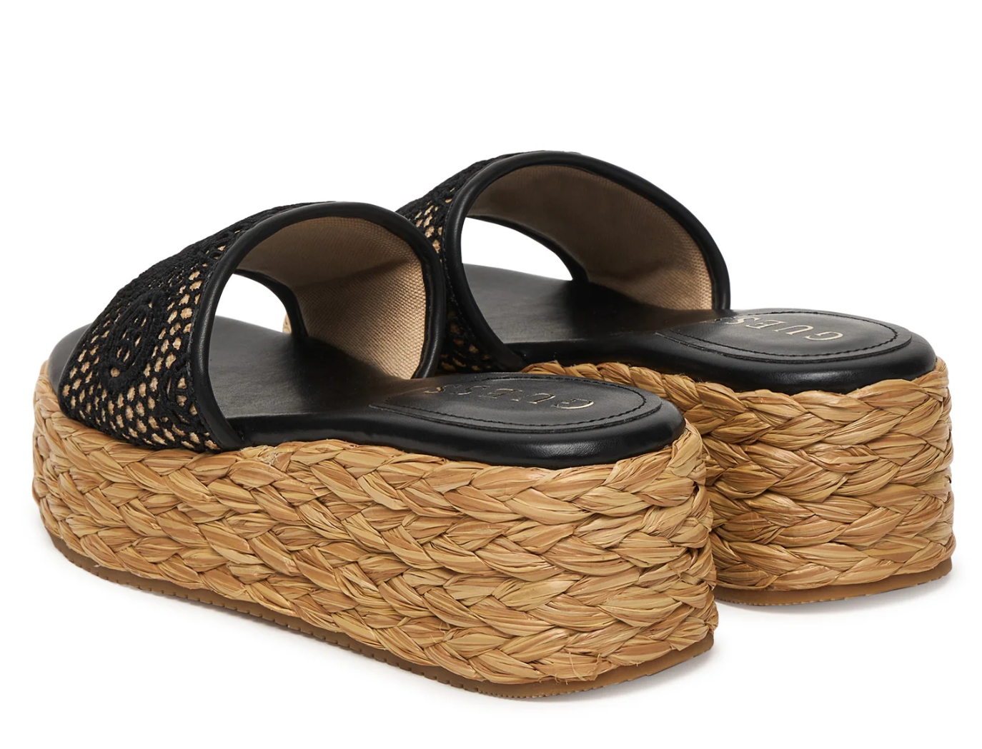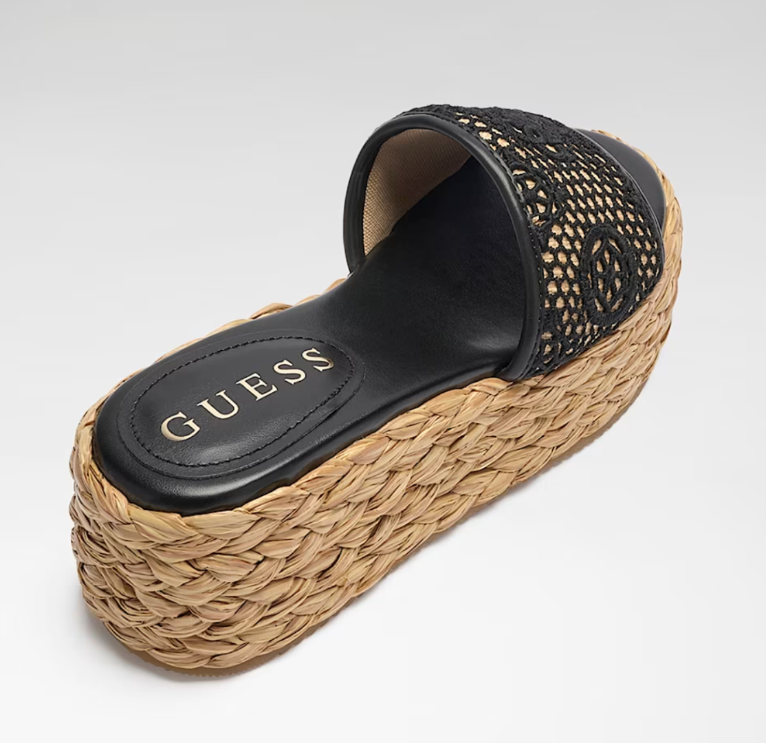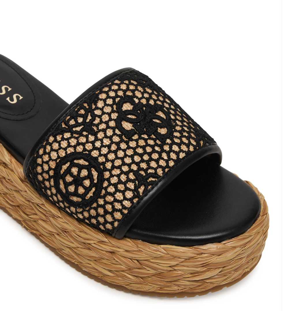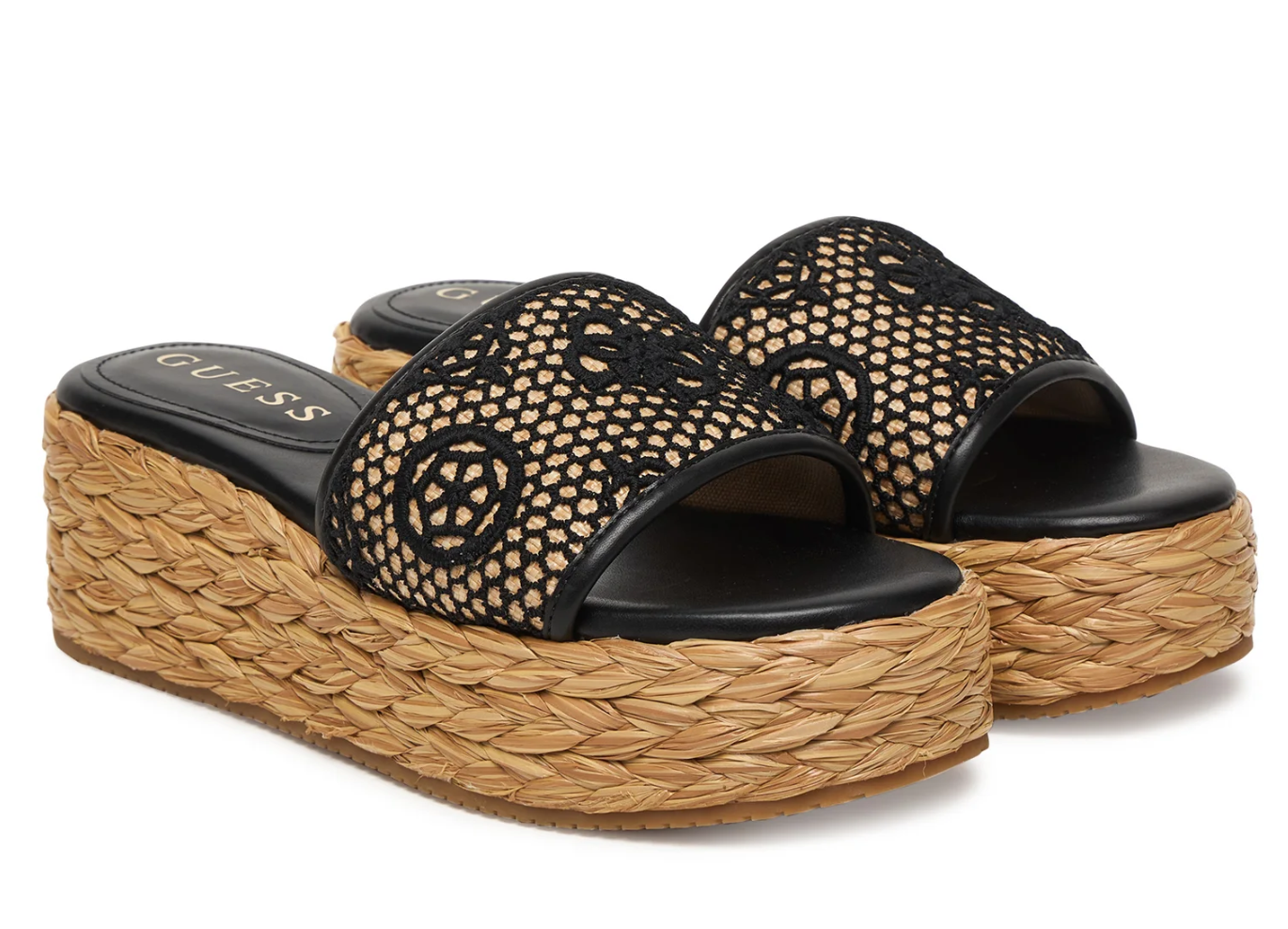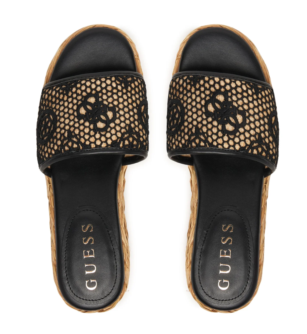 Guess Γυναικείες Εσπαντρίγιες FLJBIAFAL04-BLKNA Μαύρες, Πλατφόρμα, Slip-On, Peep Toe