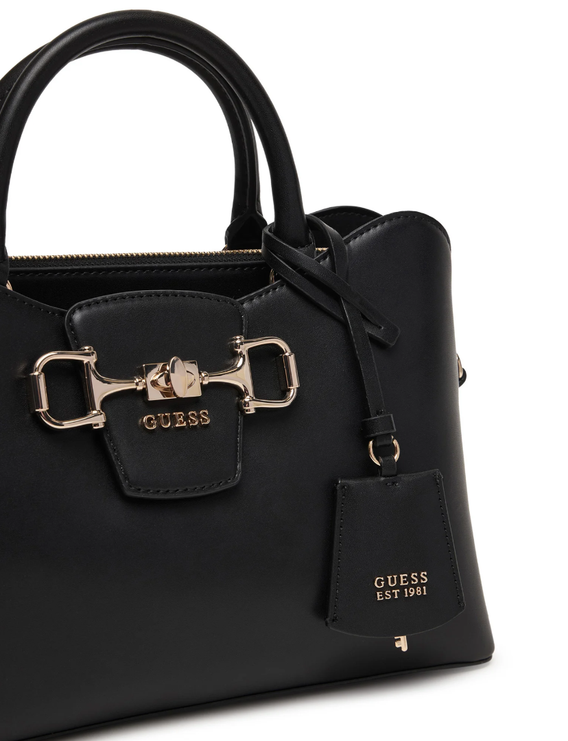 Guess Janie HWVG9910060-BLA Γυναικεία Τσάντα Χειρός / Ώμου Μαύρη, Οικολογικό Δέρμα, Φερμουάρ, Ρυθμιζόμενο Λουράκι