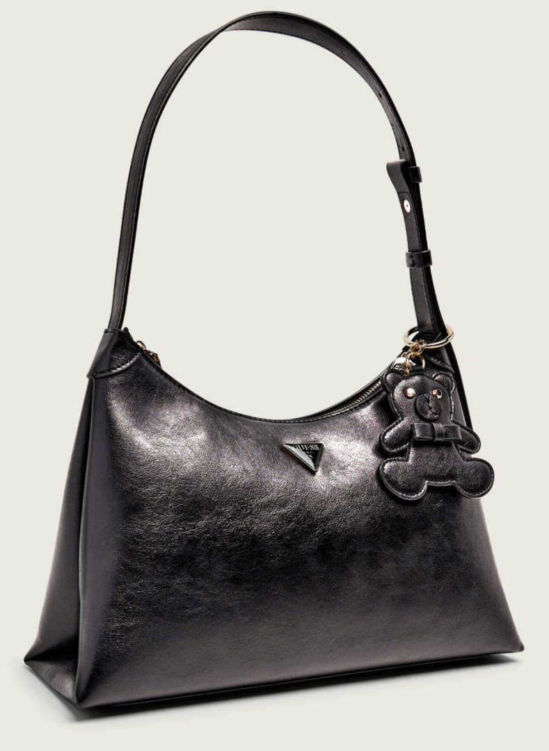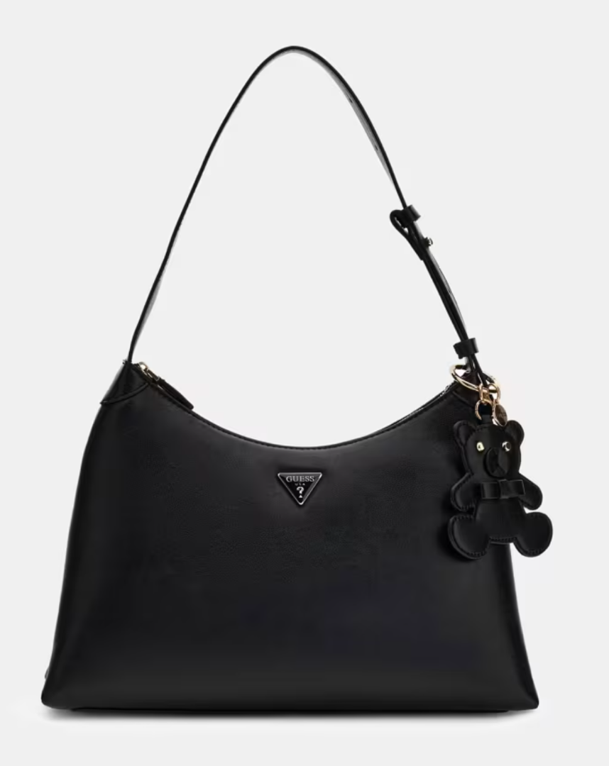 Guess Kassie HWTG9930010-BLA Γυναικεία Τσάντα Ώμου Μαύρη, Οικολογικό Δέρμα, Φερμουάρ, Χρυσές Λεπτομέρειες