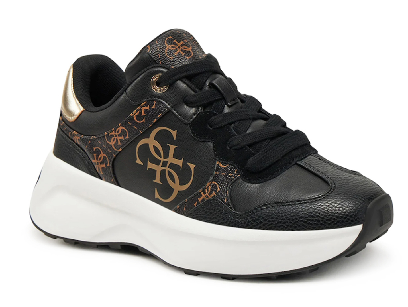 Guess Luckei Κωδικός: FLPLUCFAL12-BLKBR BRASS Γυναικεία Sneakers Μαύρα με Brass Λεπτομέρειες, Αντιολισθητική Σόλα