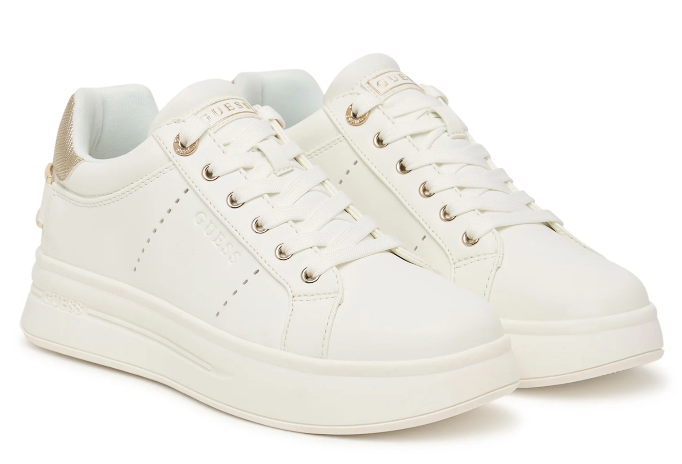 Γυναικεία Sneakers Guess FLPWESELE12-WHIGO, Λευκό , Platform 3.5 cm, Με Κορδόνια, Casual Style