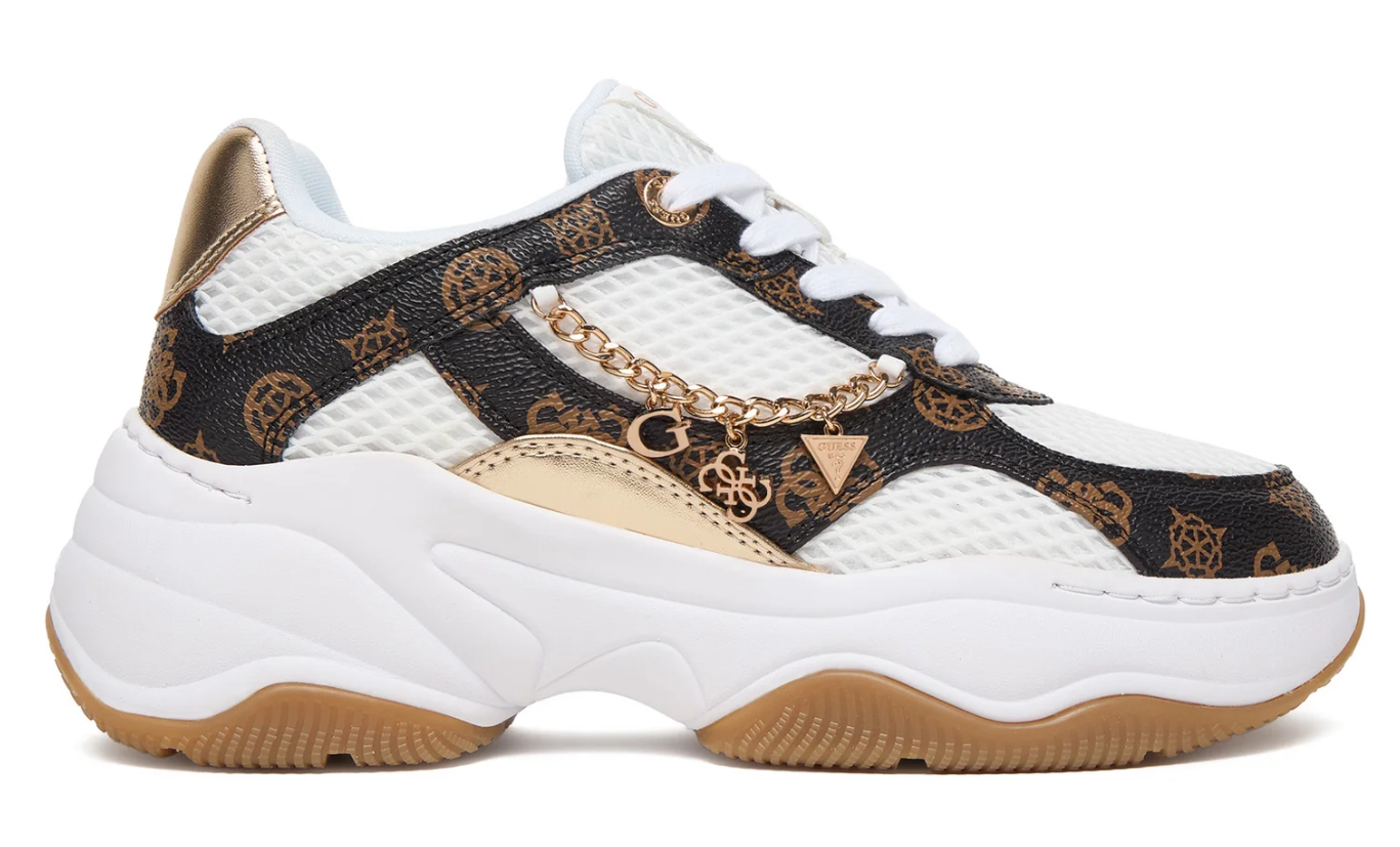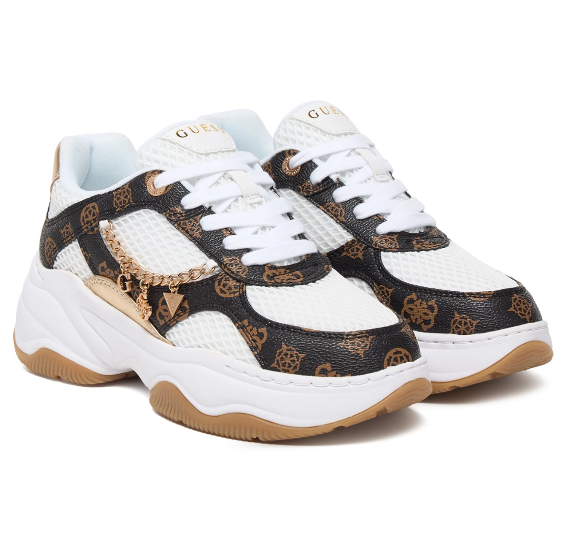 Γυναικεία Sneakers Guess HARPAA FLPHARFAL12-WHIBR, Λευκό/Καφέ, Πλατφόρμα 6 cm, BOA Δέσιμο, Casual Fashion