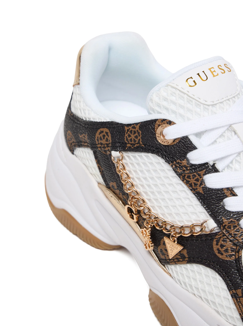 Η στρογγυλή, ελαφρώς ενισχυμένη μύτη προστατεύει το πόδι, ενώ ο ενισχυμένος πάτος στη φτέρνα με μαλακή επένδυση βοηθά στη μείωση της τριβής. Τα επίπεδα κορδόνια εξασφαλίζουν καλή εφαρμογή χωρίς σημεία πίεσης, ενώ οι διακοσμητικές λεπτομέρειες ολοκληρώνουν το χαρακτηριστικό Guess look. Η εξωτερική σόλα από καουτσούκ προσφέρει αντοχή στη φθορά και σταθερότητα, ενώ το υφασμάτινο εσωτερικό χαρίζει άνεση κατά την καθημερινή χρήση.