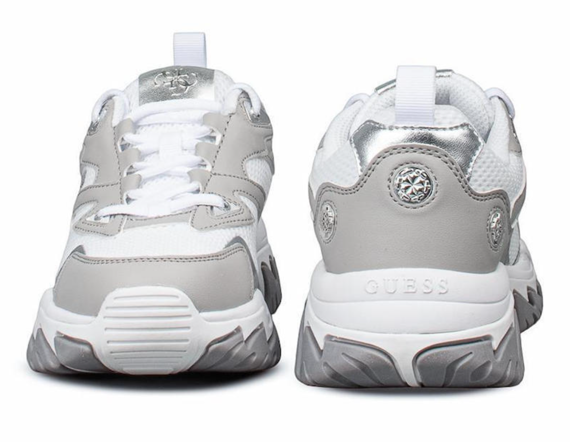 Τα γυναικεία sneakers Guess NOTISS FLPNTSELE12 συνδυάζουν σύγχρονο chunky design με άνεση για καθημερινή χρήση. Το επάνω μέρος είναι από συνδυασμό συνθετικού υλικού και υφασμένου υφάσματος (52% πολυουρεθάνη, 48% πολυεστέρας), προσφέροντας ελαφριά αίσθηση και σταθερή εφαρμογή.