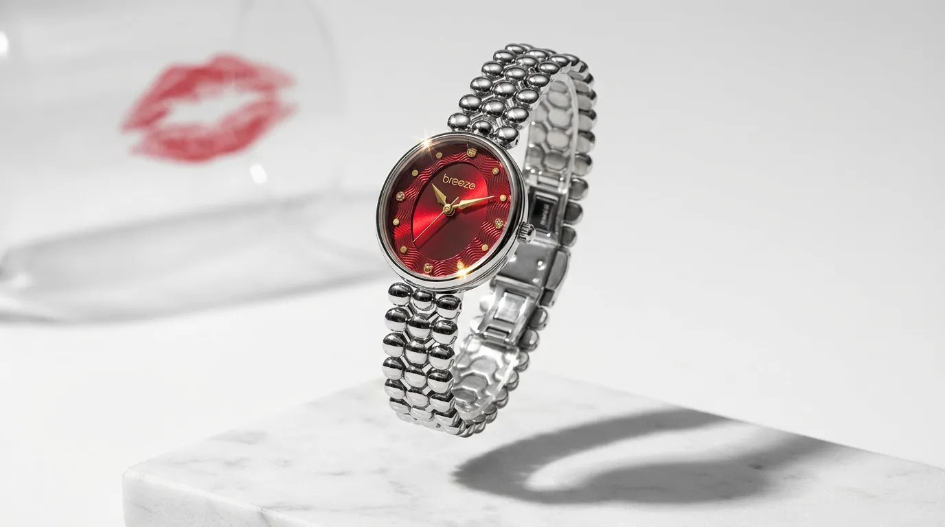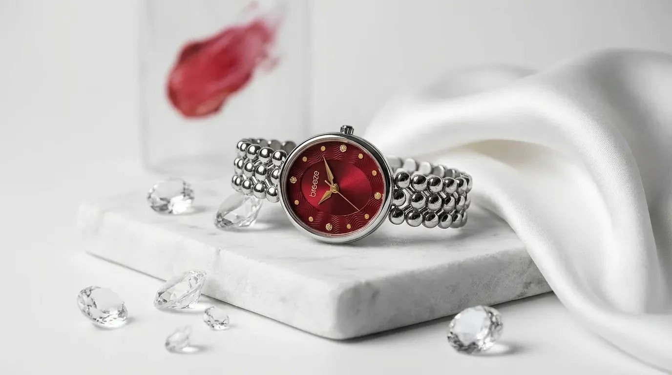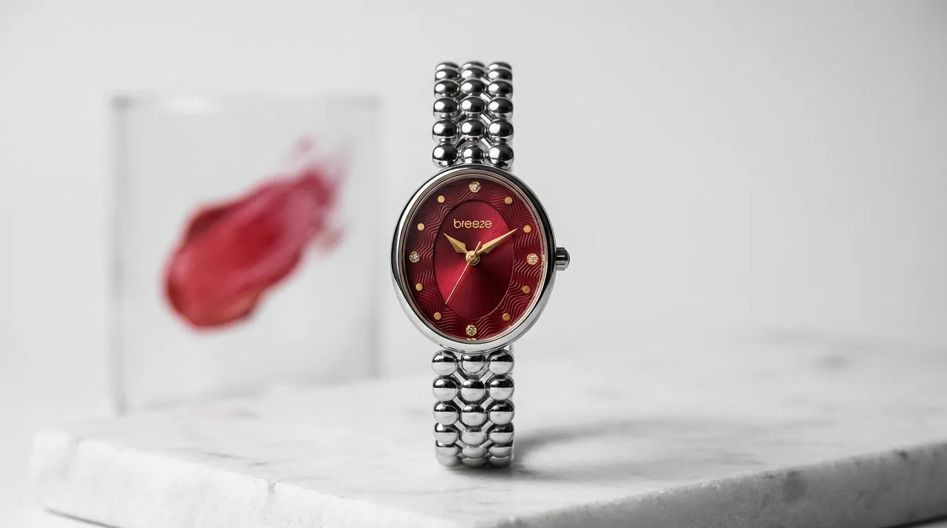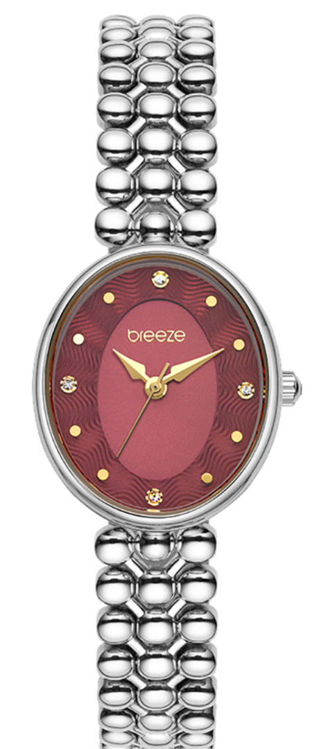 Γυναικείο Ρολόι Breeze Sirena 612591.7, Αναλογικό, Μπαταρίας, Ανοξείδωτο Ατσάλι, Ασημί Μπρασελέ, Μπορντό Καντράν, 3 ATM