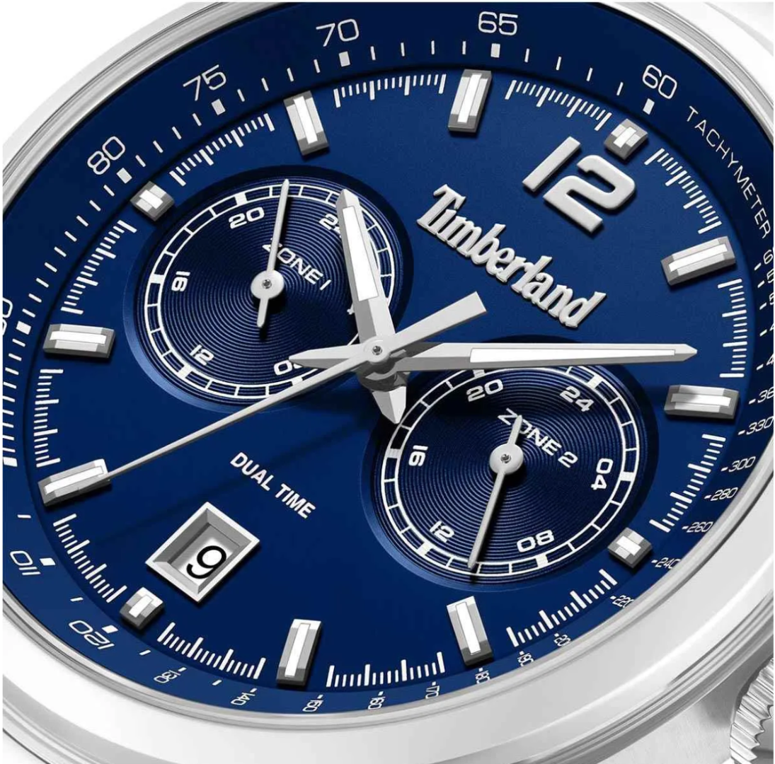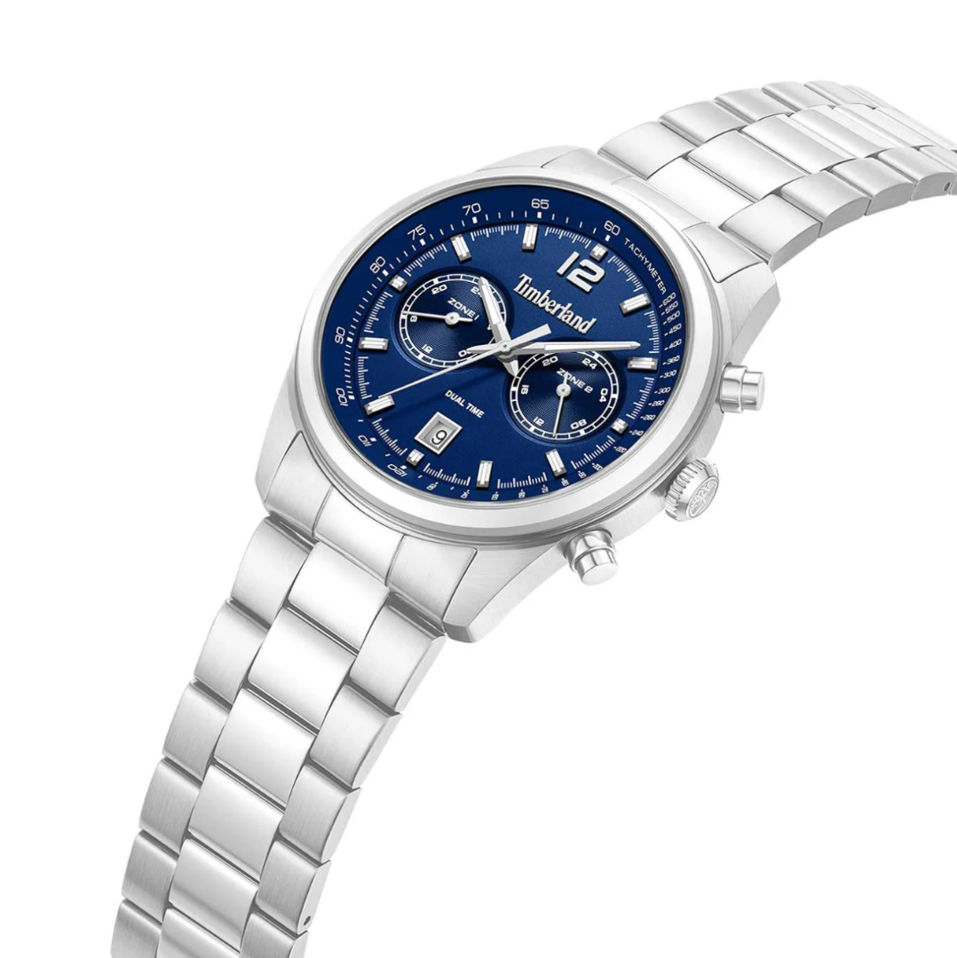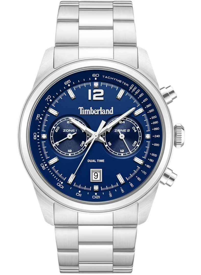 Timberland Ανδρικό Ρολόι Northbridge Dual Time TDWGK0094403 Ασημί, Ατσάλινο Μπρασελέ, Μπλε Καντράν 45 mm