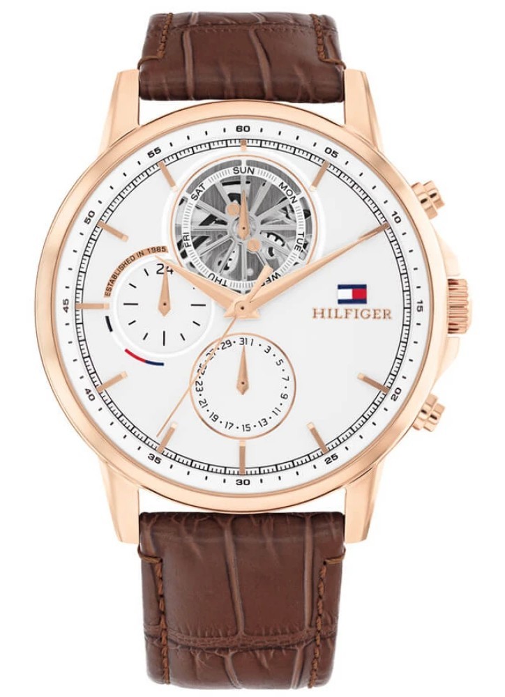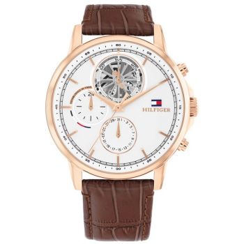 Tommy Hilfiger 1710606 Ρολόι Μπαταρίας με Καφέ Δερμάτινο Λουράκι