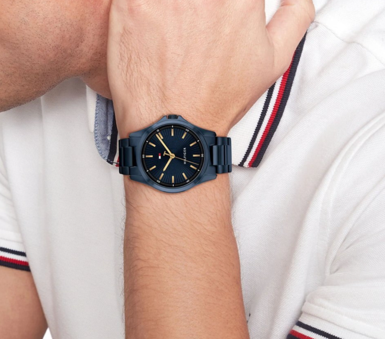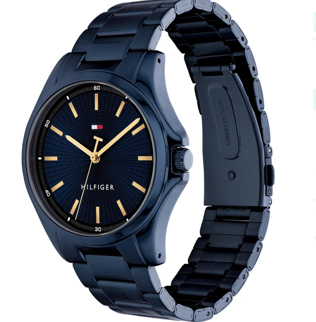 Το ανδρικό ρολόι Tommy Hilfiger Bruce 1710742 συνδυάζει διαχρονική κομψότητα με μοντέρνο σχεδιασμό. Το μπλε καντράν σε συνδυασμό με το μπλε μπρασελέ από ανοξείδωτο ατσάλι δημιουργούν ένα δυναμικό και κομψό αποτέλεσμα που ταιριάζει τόσο σε καθημερινές όσο και σε πιο προσεγμένες εμφανίσεις.