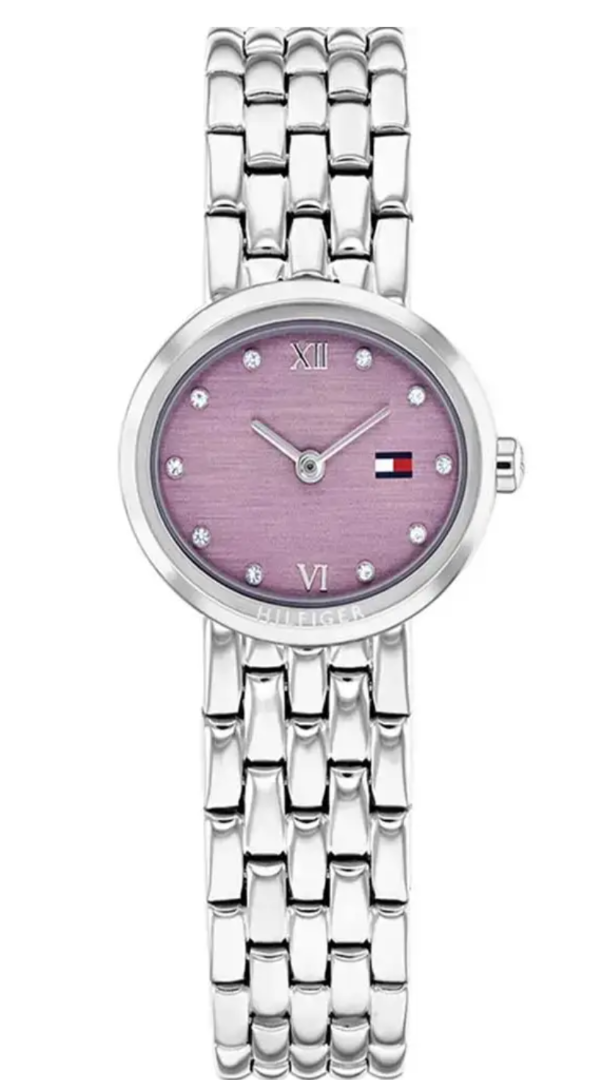 Tommy Hilfiger Γυναικείο Ρολόι Moira Crystals 1782843, Ανοξείδωτο Ατσάλι, Ασημί Μπρασελέ, Μωβ Καντράν, Quartz, 25mm