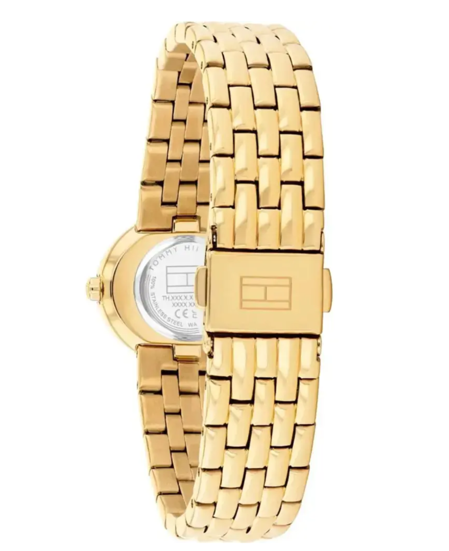 Το γυναικείο ρολόι Tommy Hilfiger Moira Crystals 1782844 αποτελεί μια κομψή επιλογή που συνδυάζει διακριτική πολυτέλεια με σύγχρονο σχεδιασμό. Η χρυσή κάσα από ανοξείδωτο ατσάλι με ιδιαίτερο tonneau σχήμα αγκαλιάζει αρμονικά τον καρπό, προσφέροντας κομψότητα και άνεση.