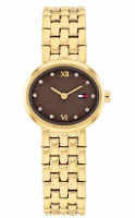 Tommy Hilfiger Γυναικείο Ρολόι Moira Crystals 1782844, Χρυσό Μπρασελέ, Καφέ Καντράν, Ανοξείδωτο Ατσάλι, Quartz, 25mm