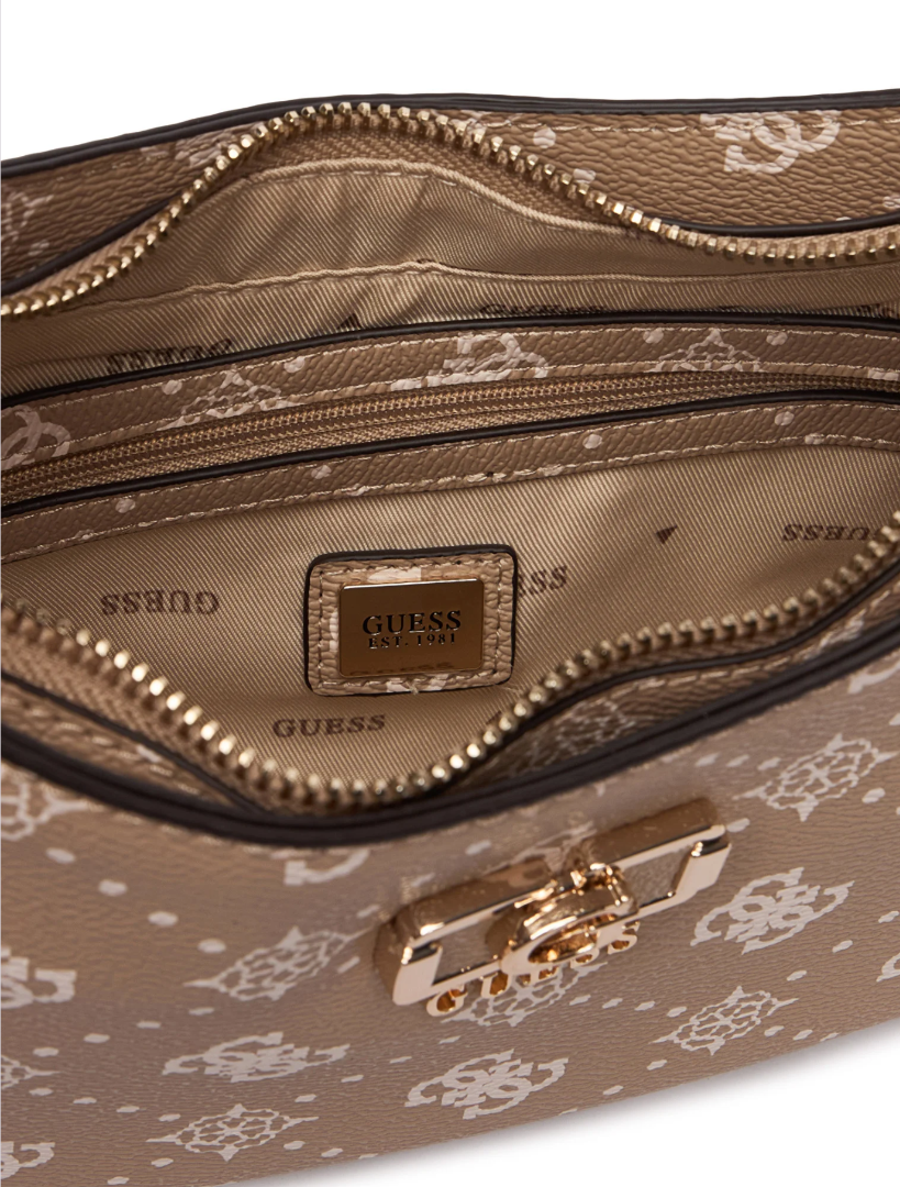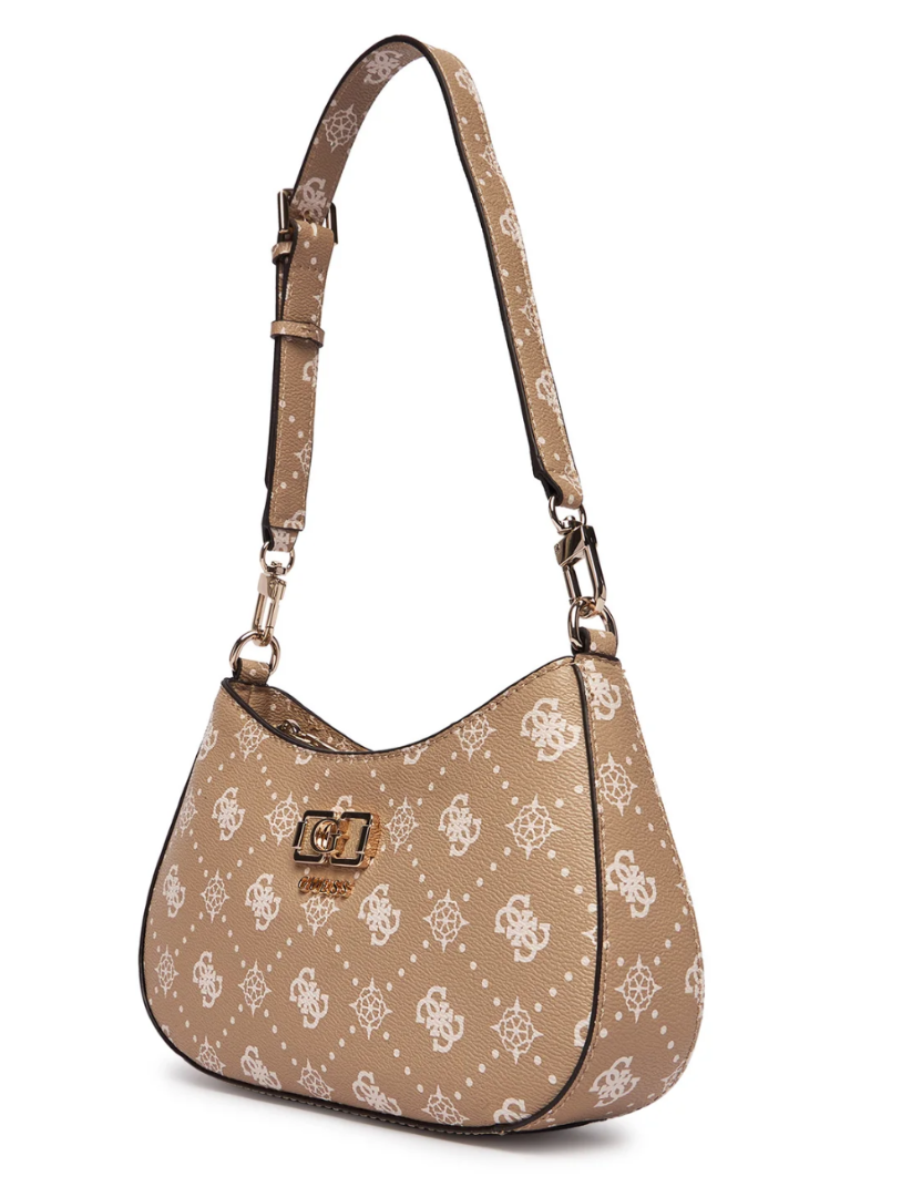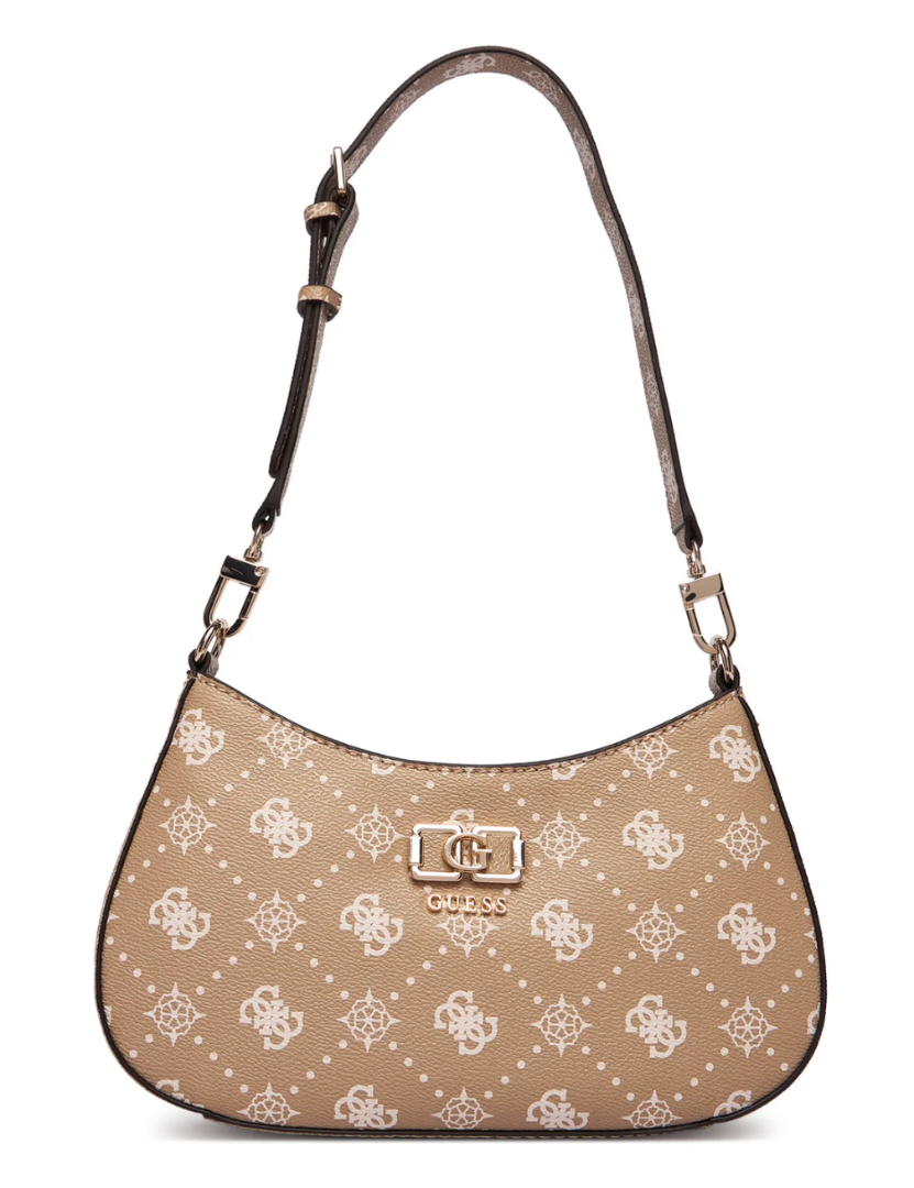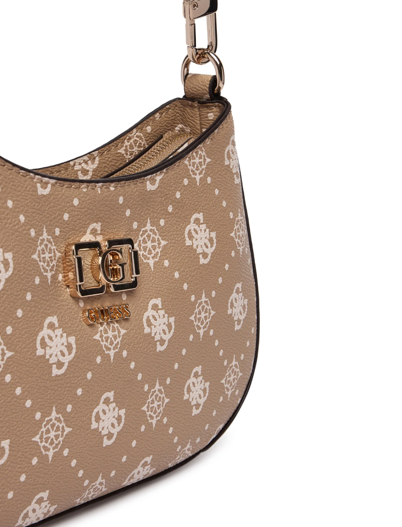 Guess Emelie Logo HWGP9928180-BSG Γυναικεία Τσάντα Ώμου Μπεζ, Οικολογικό Δέρμα, Φερμουάρ, Αφαιρούμενη Χειρολαβή