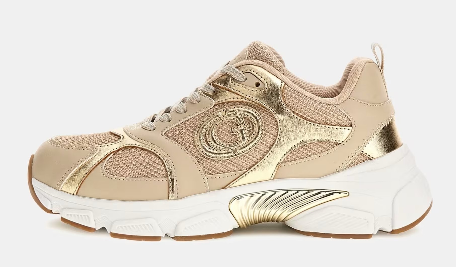 Γυναικεία sneakers Guess σειρά Ibitha, σε μπεζ απόχρωση, ιδανικά για καθημερινές casual εμφανίσεις. Συνδυάζουν σύγχρονο design