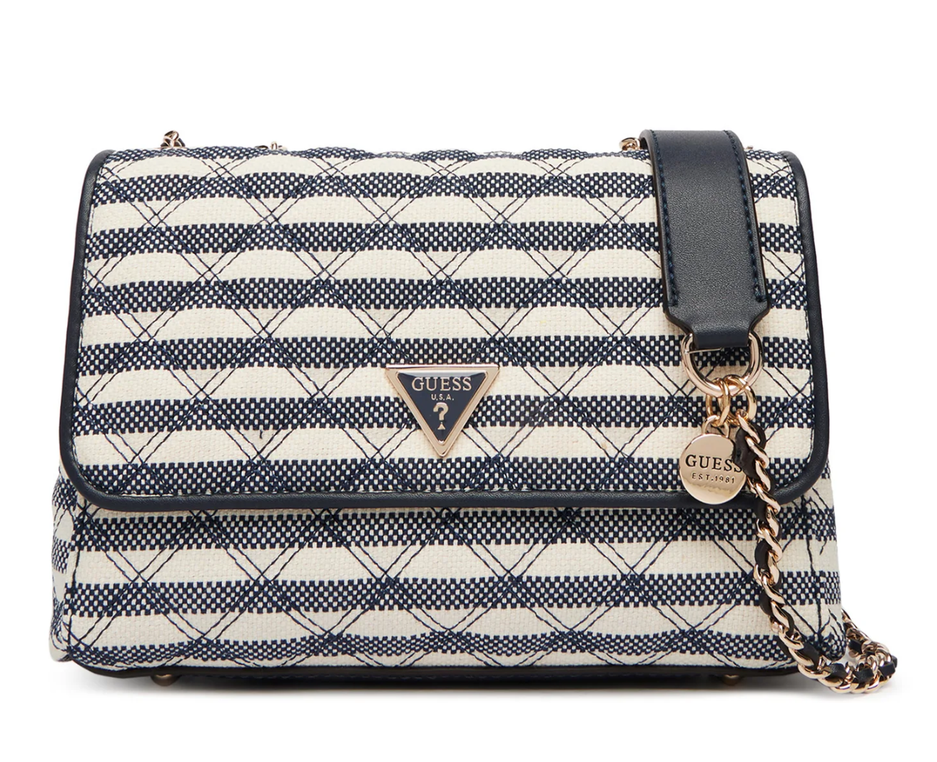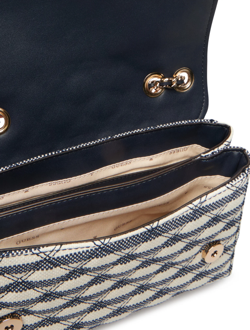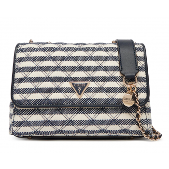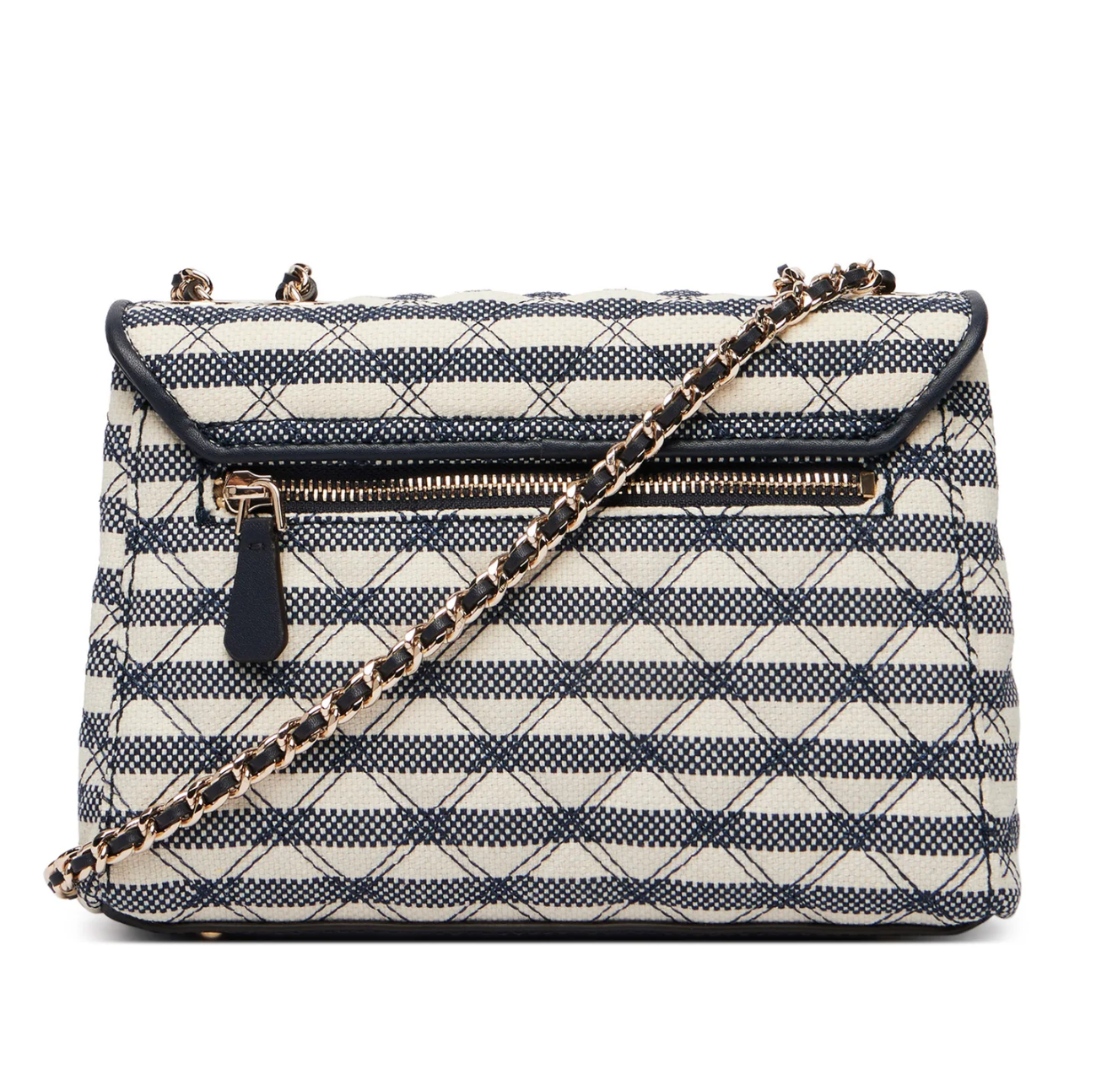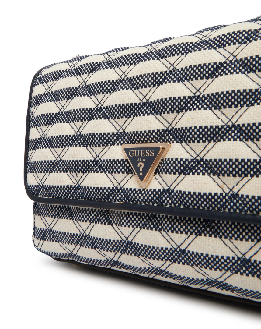 Guess Giully II HWAG9673200-NML Γυναικεία Τσάντα Χιαστί Μπλε / Κρεμ, Οικολογικό Δέρμα, Ριγέ Σχέδιο, Μαγνητικό Κούμπωμα με Κλαπέτα