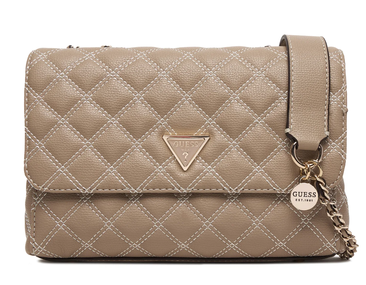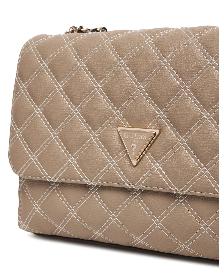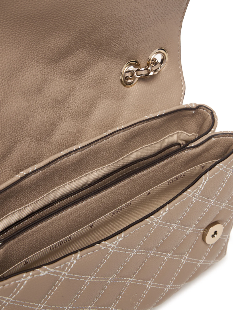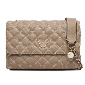 Guess Giully II HWBQ9673200-PLC Γυναικεία Τσάντα Χιαστί, Μπεζ, Καπιτονέ, Οικολογικό Δέρμα