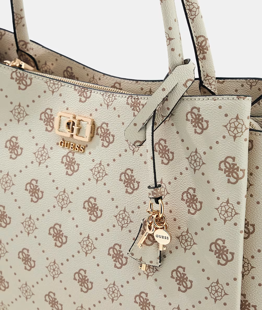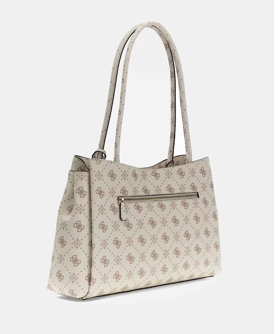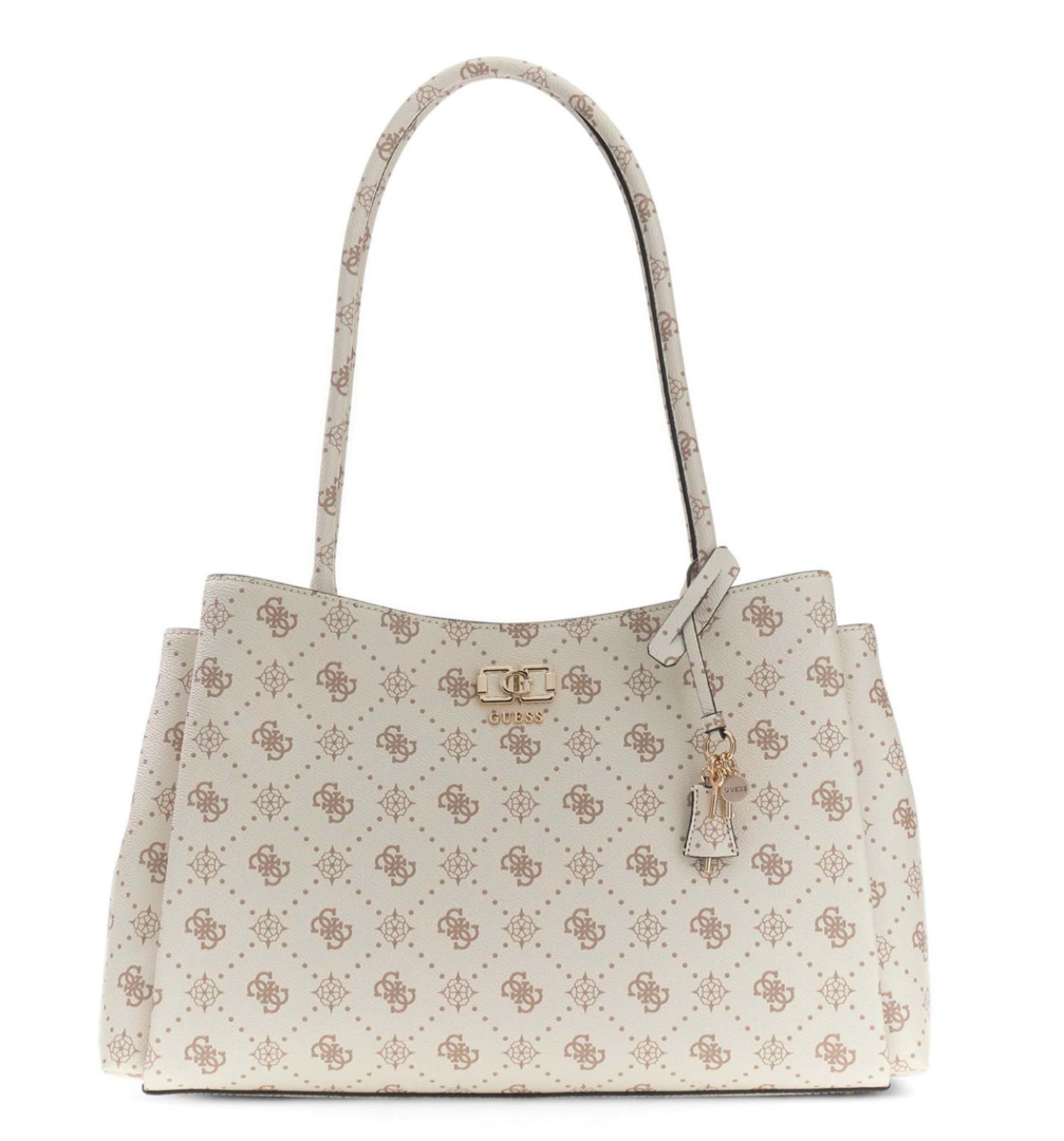 Η γυναικεία τσάντα ώμου Guess Emelie Logo Girlfriend Carryall HWGP9928220-VNO σε εκρού απόχρωση αποτελεί μια ευρύχωρη και κομψή επιλογή για καθημερινή χρήση. Ο σχεδιασμός με χαρακτηριστικό logo print και χρυσές μεταλλικές λεπτομέρειες προσδίδει μοντέρνο και εκλεπτυσμένο στυλ που ταιριάζει σε κάθε εμφάνιση.