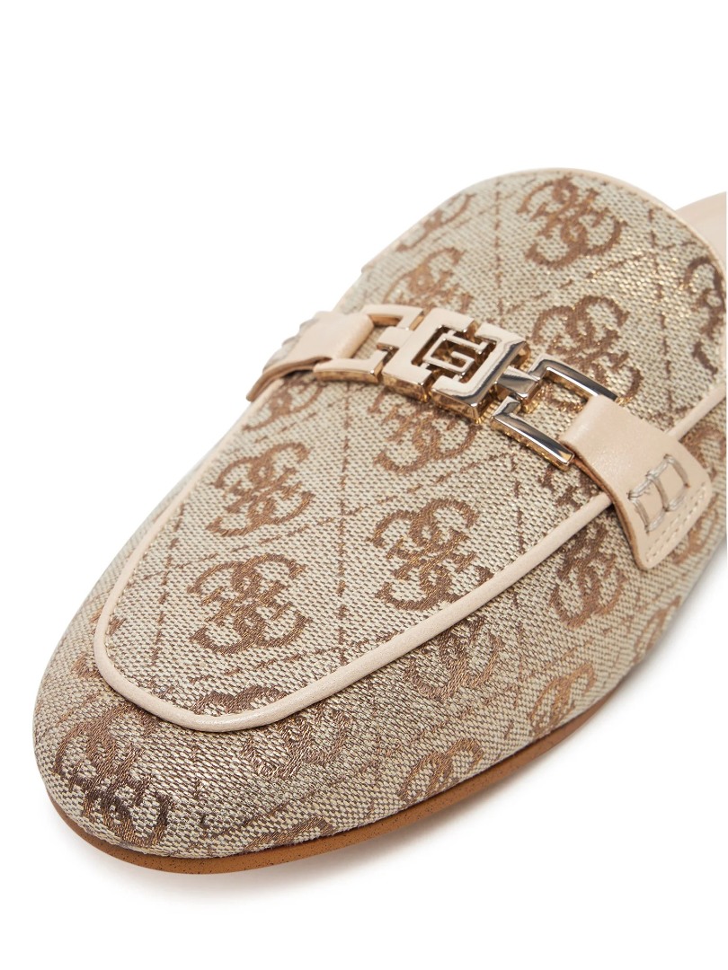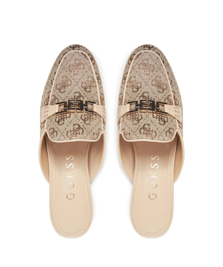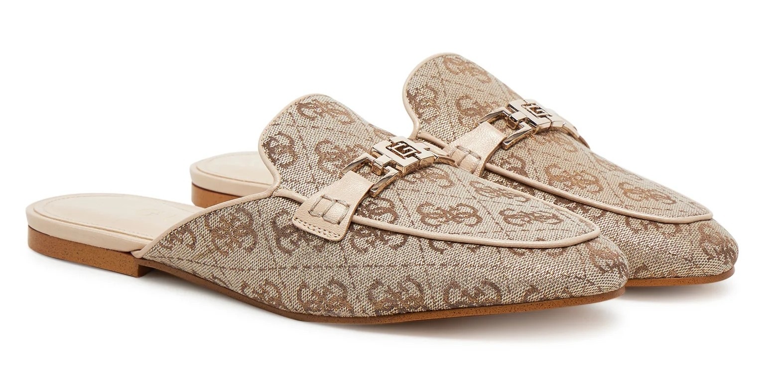 Γυναικεία mules Guess FLJBO2LEL06 GOLD σε εντυπωσιακή χρυσή απόχρωση σχεδιασμένα για κομψές καθημερινές και βραδινές εμφανίσεις με έντονο glam fashion χαρακτήρα