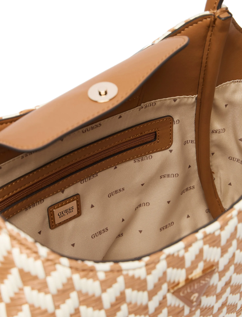 Guess Tessi HWWG7691230-CGM Γυναικεία Τσάντα Ώμου Καφέ, Οικολογικό Δέρμα, Πλεκτό Σχέδιο, Μαγνητικό Κούμπωμα & Κλαπέτα, Μεγάλο Μέγεθος A4