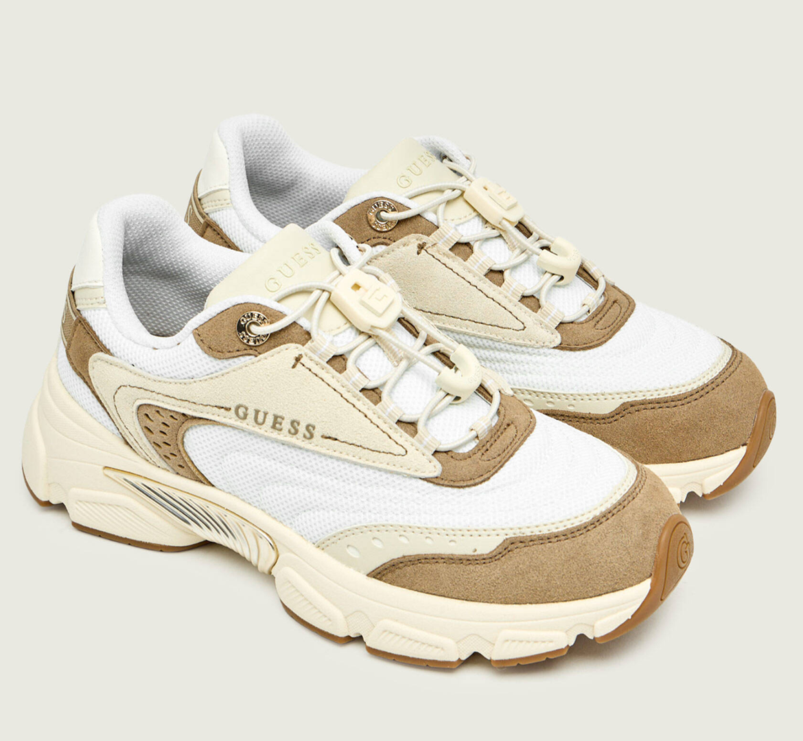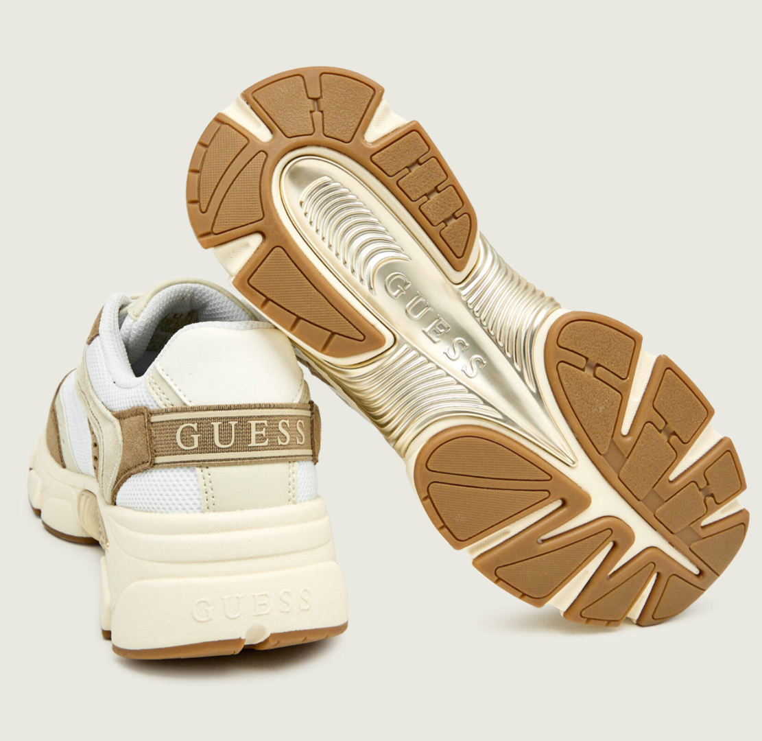 Τα γυναικεία sneakers Guess Imeri συνδυάζουν μοντέρνο σχεδιασμό και άνεση για καθημερινή χρήση. Είναι κατασκευασμένα από συνδυασμό υφασμένου και συνθετικού υλικού, προσφέροντας ελαφριά αίσθηση και σταθερή εφαρμογή. Διαθέτουν ελαφρώς ενισχυμένη μύτη και σκληρυμένο μετρητή φτέρνας για καλύτερη στήριξη στον αστράγαλο και τη φτέρνα, ενώ το κλασικό δέσιμο με κορδόνια επιτρέπει εξατομικευμένη προσαρμογή στο πόδι. Η εξωτερική σόλα από καουτσούκ προσφέρει σταθερό περπάτημα, ενώ ο υφασμάτινος πάτος ενισχύει την άνεση στην καθημερινή χρήση.